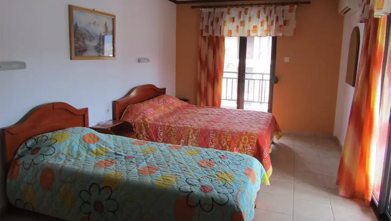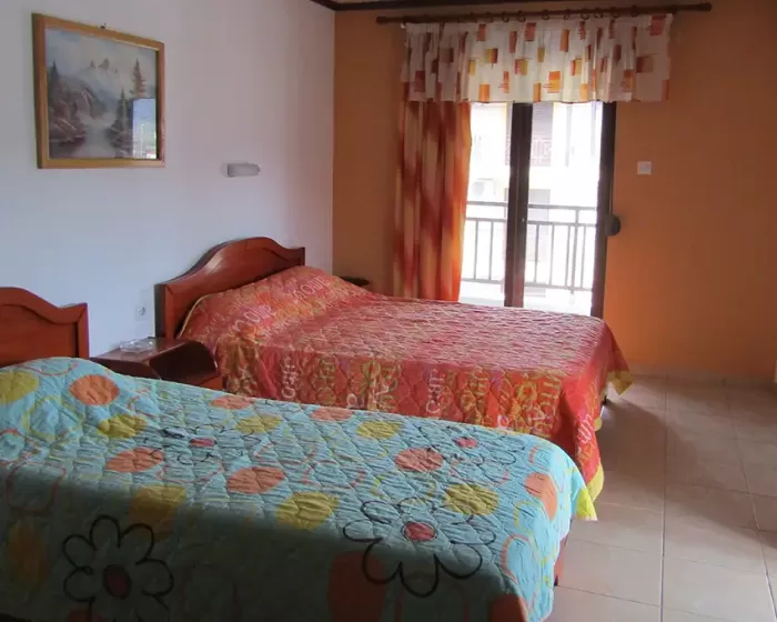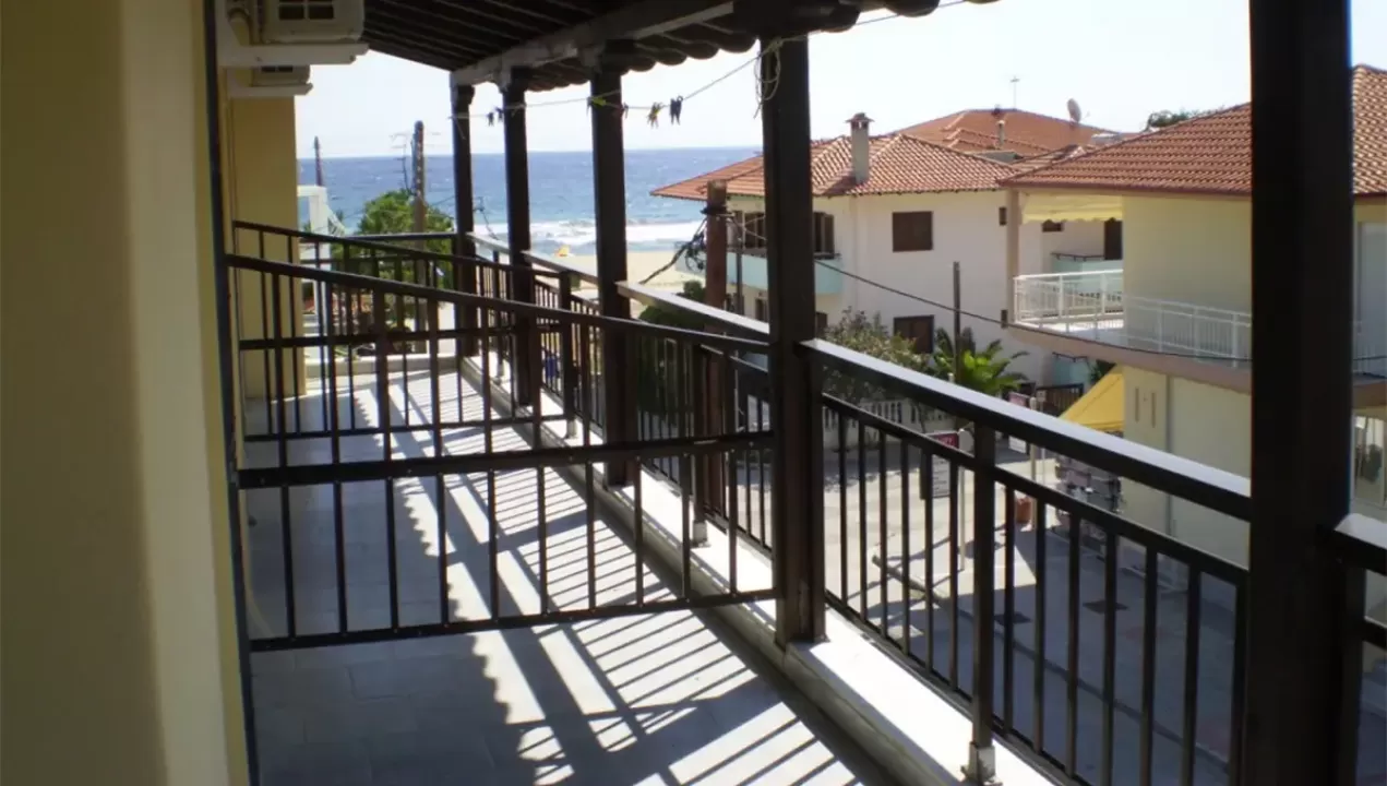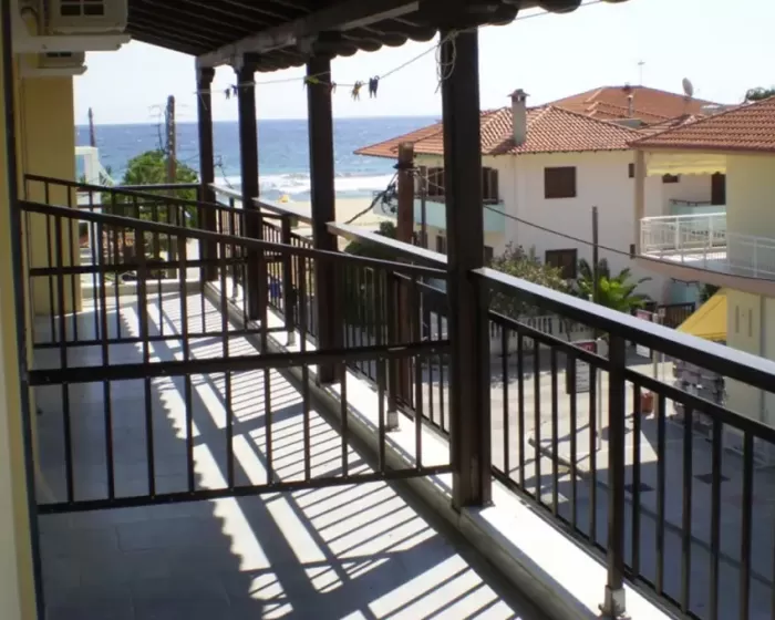 Vila Evangelia Sarti se nalazi u novom, mirnom delu Sartija, na oko 50 metara udaljenosti od plaže. Ovaj objekat raspolaže dvokrevetnim i trokrevetnim studijima koji su smešteni na poslednjem spratu. Većina studija ima bočni pogled na more pa su i cenovno odvojeni.