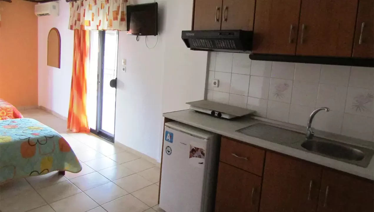 kupatilo, opremljena mini-kuhinja, frižider, klima-uredjaj, TV, terasa sa garniturom za sedenje