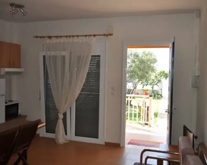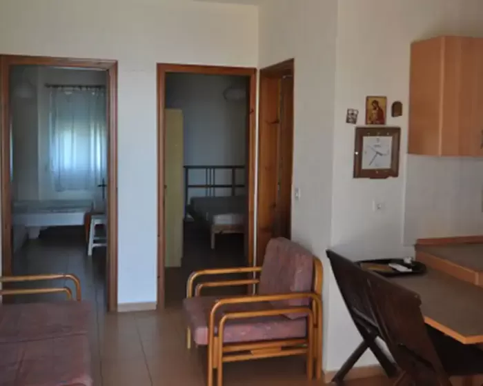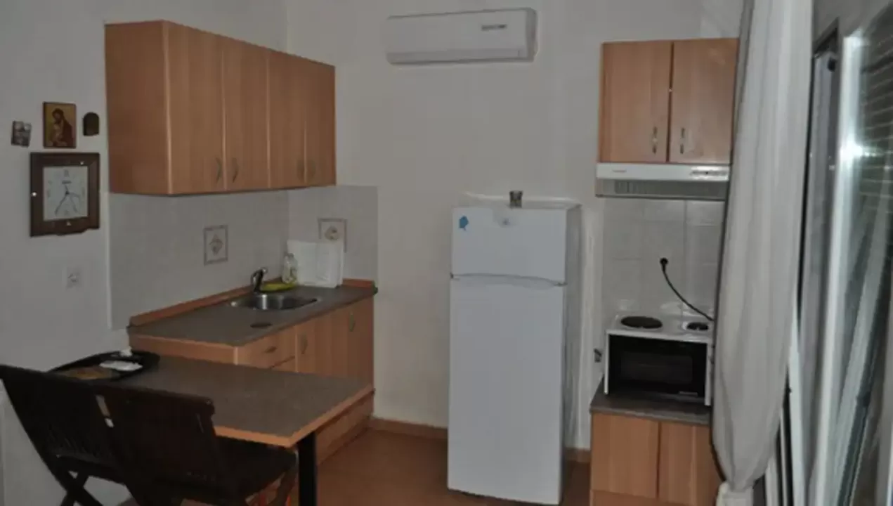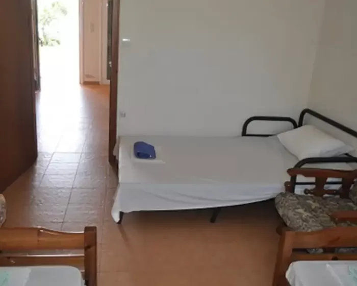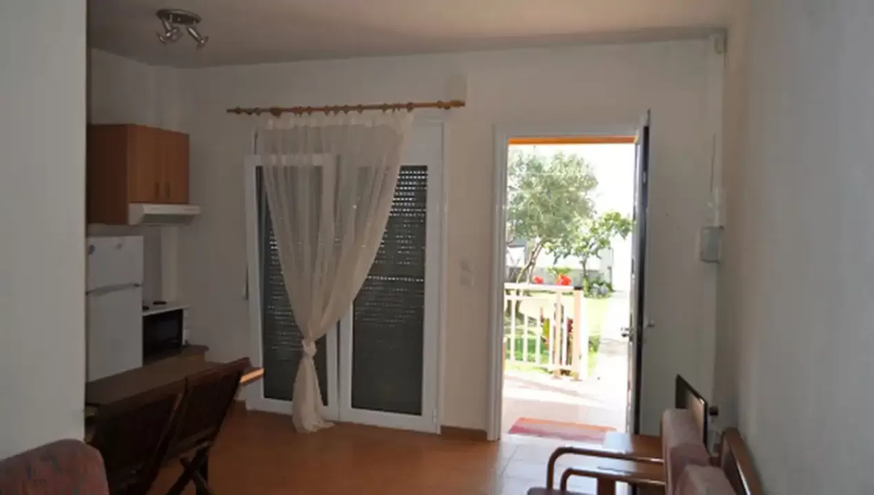 apartman: spavaća soba raspolaže francuskim ležajem i jednim singl ležajem, kuhinjski deo u kome se nalazi jedan sing ležaj i koji sadrži šporet sa dve ringle i rernom, frižider, sudoperu i elemente sa osnovnim kuhinjskim inventarom.