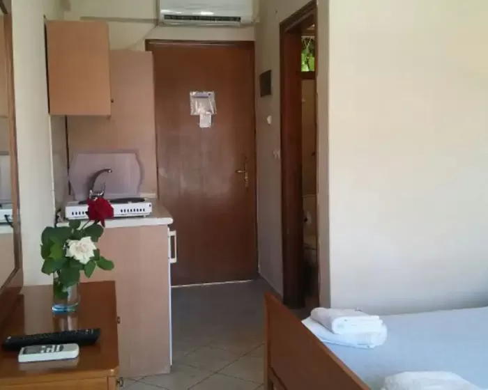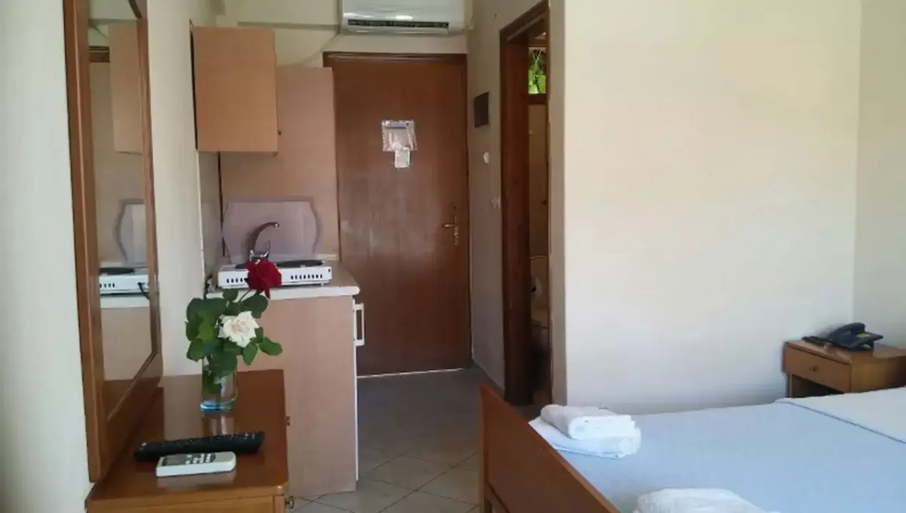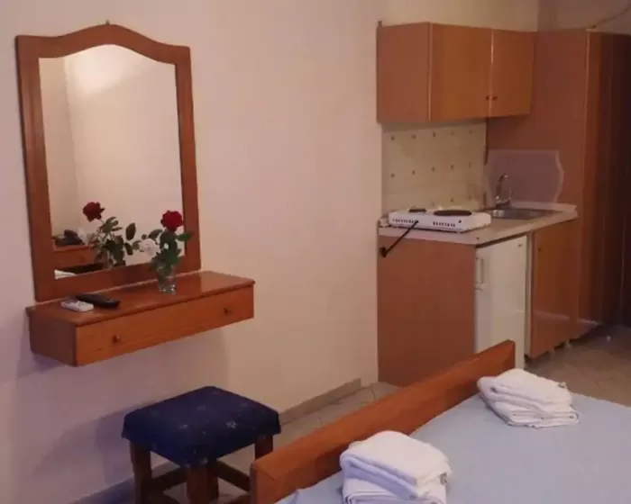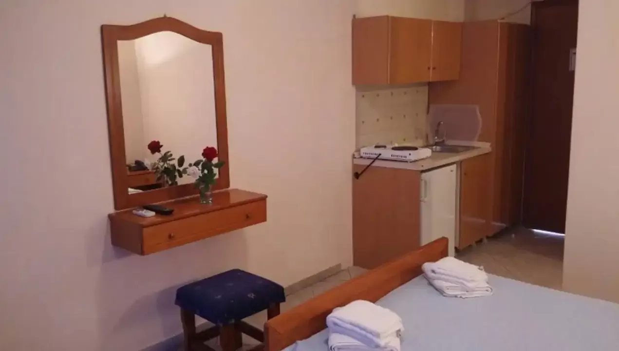 Poseduje dvokrevetna studija sa pomoćnim ležajem (fotelja na razvlačenje), smeštene u prizemlju i na drugom spratu. Svaka smeštajna jedinica ima opremljen kuhinjski deo, kupatilo/wc, flat TV, WiFi internet i klima uređaj (korišćenje uključeno u cenu aranžmana). Svi studiji imaju terasu sa garniturom za sedenje. Posteljina I peškiri su sastavni deo svake smeštajne jedinice I menjaju se jednom u toku boravka gostiju. Vila poseduje recepciju, opuštajući jakuzzi bazen na krovu (besplatno korišćenje ua goste hotela). Zbog izuzetno dobre pozicije (u camom centru mesta, sa bazenom, a nedaleko od plaže), aparthotel Flesvos je preporuka za sve kategorije turista.