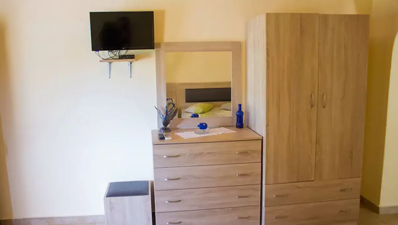 Svi studiji i apartmani imaju terasu, wc i tuš sa toplom i hladnom vodom, sto i stolice, orman, kuhinju sa frižiderom koja je opremljena prema broju osoba (tanjiri, čaše, šolje, escajg, šerpa, tiganj, djezva za kafu). Promena posteljine je na pola smene, za smene duže od 7 noći. Domaćini kuća na dan zamene posteljine dostavljaju čistu posteljinu koju gosti sami menjaju kao što i sami održavaju higijenu apartmana tokom svog boravka. Pored standardne opreme apartmani mogu imati odredjenu opremu koja ih izdvaja u odnosu na ostale apartmane iz ponude. U cenovnicima se pored naziva određenih kuća nalaze brojevi. Brojevi su konkretni brojevi određenog studija ili apartmana koji se u određenom smislu razlikuje u odnosu na studije/apartmane istog tipa u okviru kuće. To se može odnositi na veličinu ili lokaciju terase, kao i na prostranost samog apartmana, zbog koje i postoji razlika u ceni u odnosu na ostale iz određene kuće. Molimo goste da ponesu svoje peškire, s obzirom da peškiri nisu deo standardine opreme studija/ apartmana.