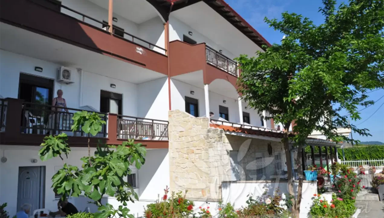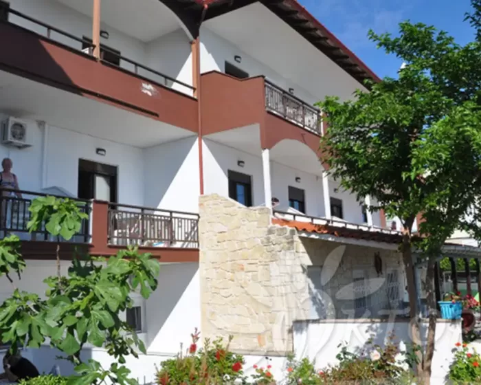 Vila Galini Garden Polihrono se nalazi na samoj obali mora, u prvom redu kuća pored plaže i šetališta u Polihronu. Vila raspolaže apartmanima i dupleks apartmanima, namenjenim za smeštaj četiri ili pet osoba, smeštenim u prizemlju. U neposrednoj blizini vile je bar na otvorenom Praia, gde se gosti mogu opustiti (u ovom baru se u visokoj sezoni može desiti da vikendom bude glasnija muzika tokom noći).