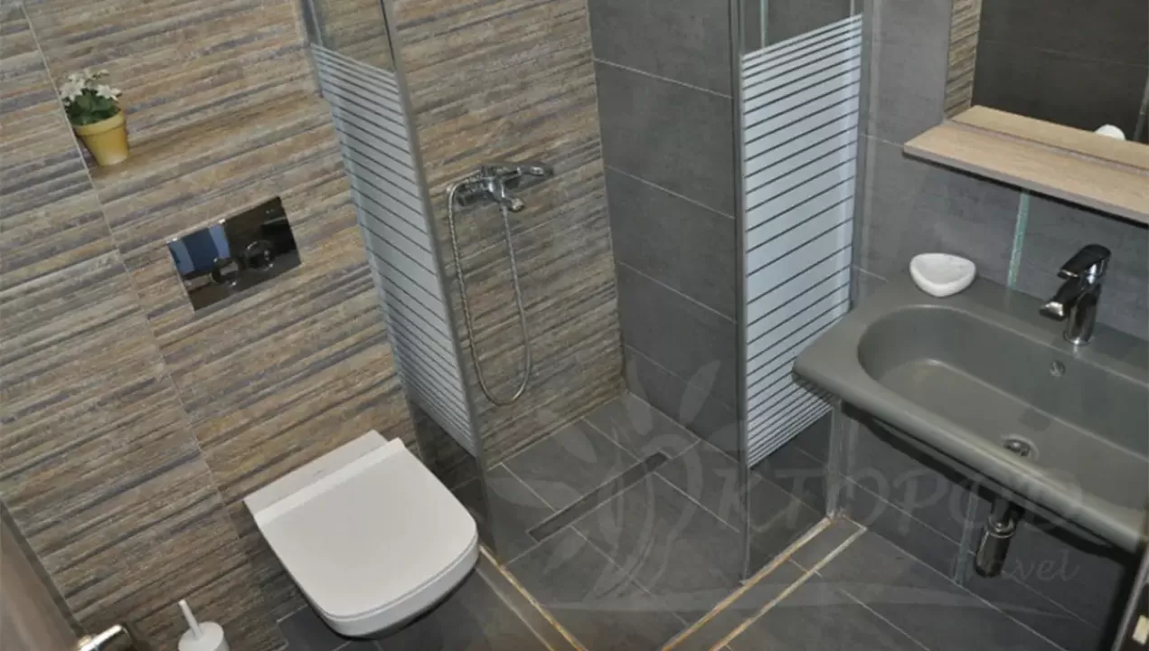kupatilo, komplet opremljena kuhinja, frižider, TV, klima-uredjaj, terasa sa garniturom za sedenje