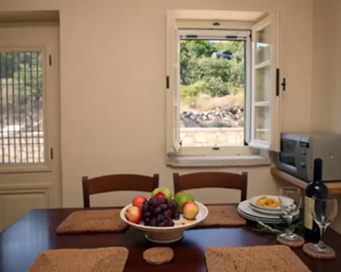 Vila Geofos Vasiliki Lefkada se nalazi na brdu iznad Vasilikija, udaljena od grada 6 kilometara, a u neposrednoj blizini plaže Porto Kaciki. Vila ima 230m², 5 spavaćih soba, 3 kupatila, dnevnu sobu sa 14 sedećih mesta, trpezariju sa isto toliko mesta za stolom.