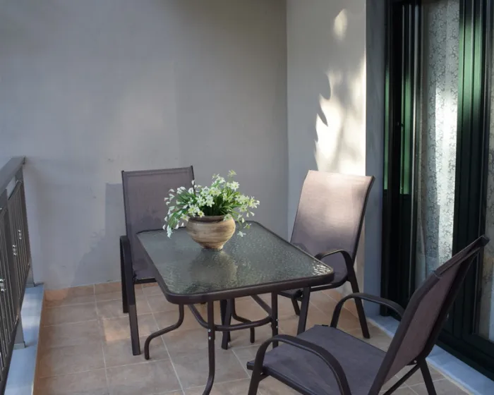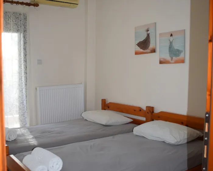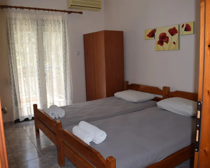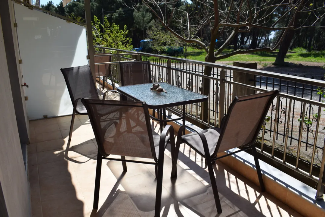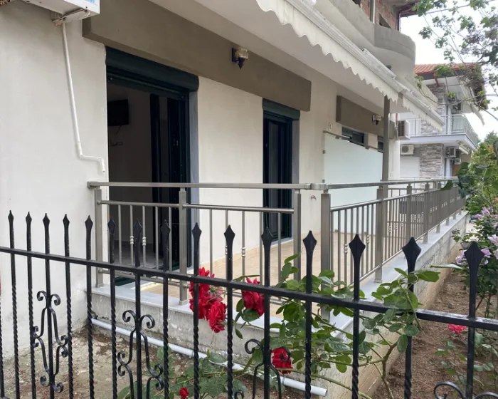 Vila Georgiadis se nalazi u mirnom delu poznatog letovališta i vazdušne banje Metamorfozis, na oko 450 metara od plaže koja nosi Plavu zastavicu, a u blizini samog centra mesta. Okružena je bogatim zelenilom i gustom borovom šumom, a gostima je na raspolaganju lepo uređeno i prostrano dvorište. Smeštaj u vili Georgiadis čine apartmani smešteni u visokom prizemlju i na prvom spratu. Svaki apartman ima TV, besplatan bežični internet (Wi-Fi) i klima uređaj, čije je korišćenje uračunato u cenu aranžmana.