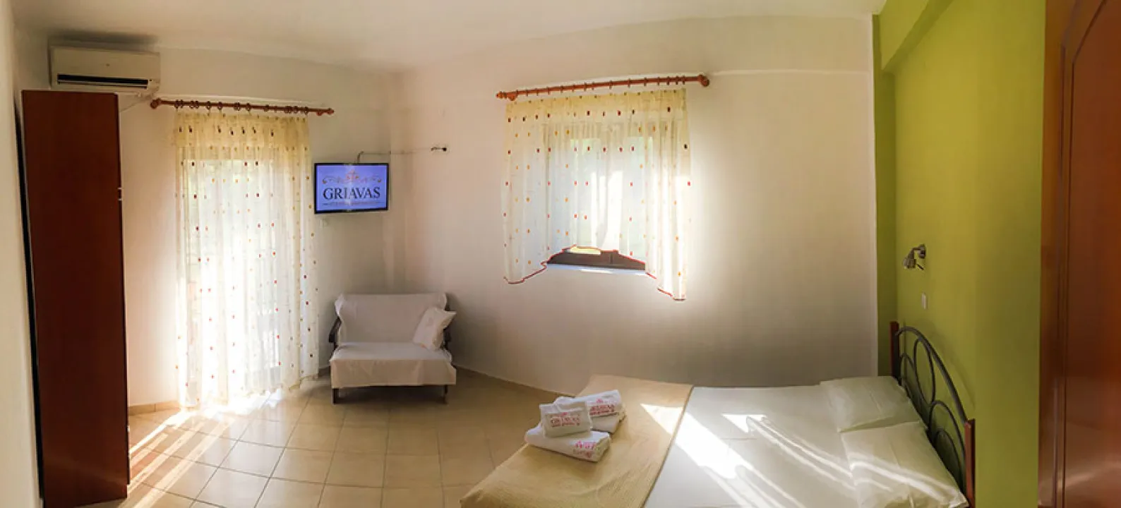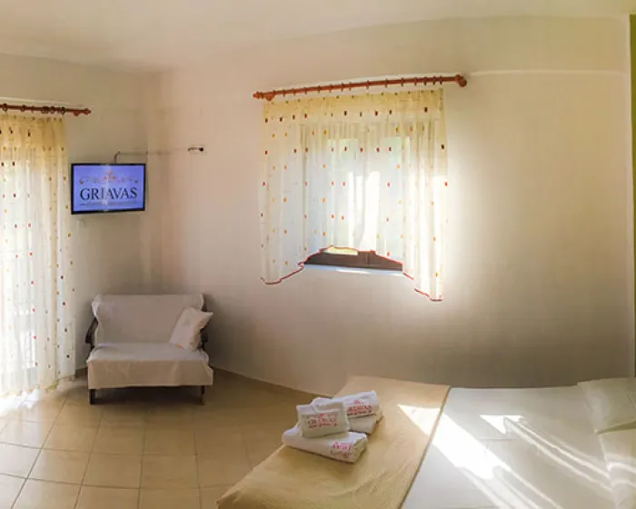 Vila Griavas Sykia je smeštena na prelepoj, peščanoj plaži sa kristalno plavim morem, koja se proteže dužinom od 400 metara. Vila Griavas Sykia je udaljena oko 150 kilometara od Soluna, a u njenoj blizini se nalazi popularna plaža Valti i neke od najlepših plaža Grčke, kao što su Klimataria i Kavourotripes, udaljene svega par kilometara od samog smeštaja. Preporuka.