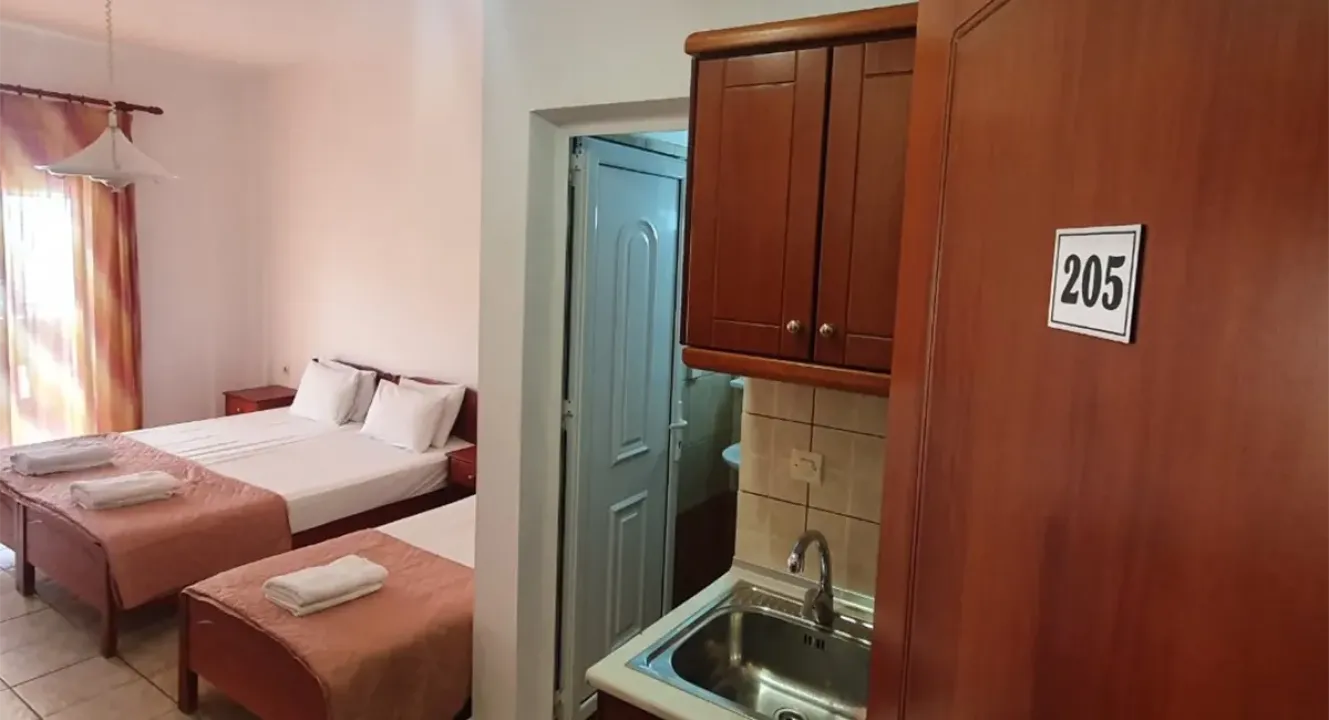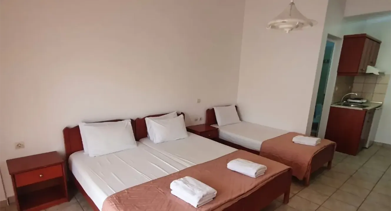 Vila Hariklia Leptokarija se nalazi na samo 30 metara udaljenosti od plaže popularnog letovališta olipmske regije, Leptokarija. U svom sastavu za smeštaj gostiju, vila Hariklia Leptokarija poseduje studije, koji mogu ugostiti do četiri osobe.