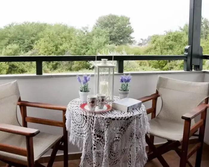 kupatilo, peškiri, opremljena mini-kuhinja, klima-uredjaj, TV, balkon sa garniturom za sedenje