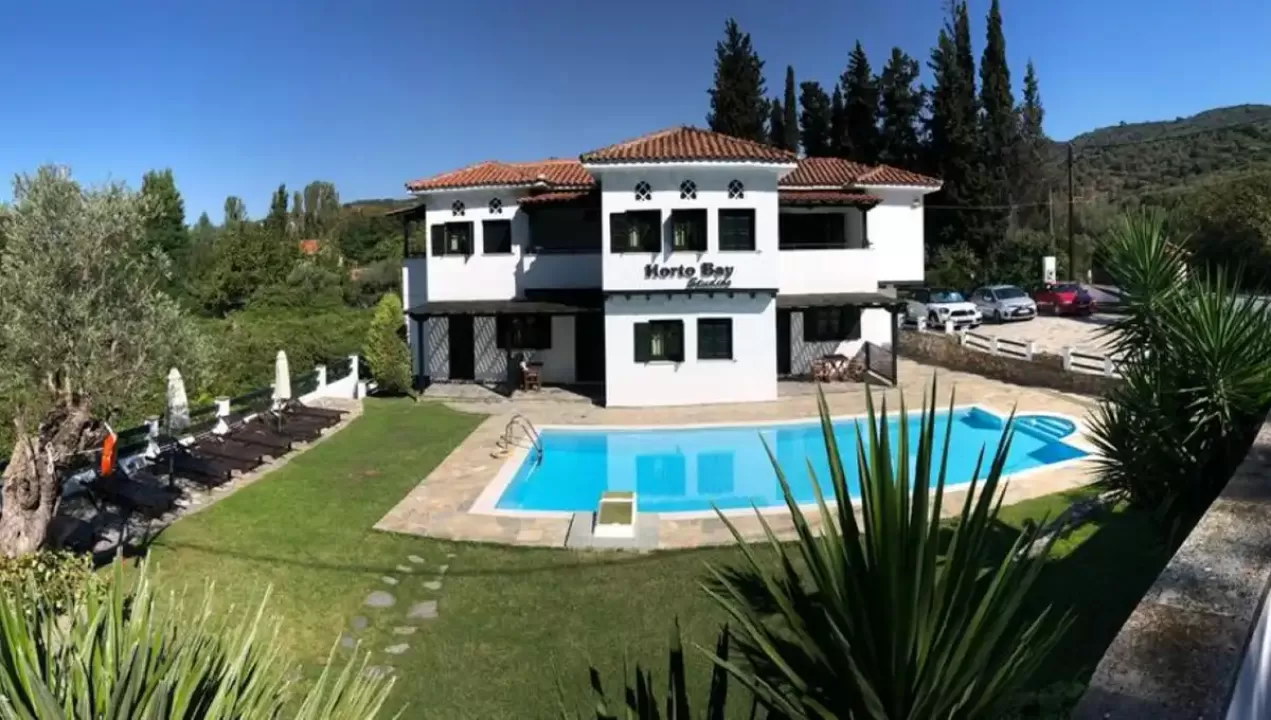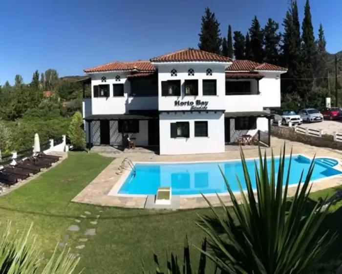 Vila Horto Bay Horto Milina se nalazi u letovalištu Horto, od prve plaže udaljena oko 150 metara, a dve prelepe plaže Vathia Spilia i Aeroutsikos su udaljene nekoliko kilometara od ovog divnog objekta za smeštaj gostiju, koji u svojoj ponudi ima i otvoreni bazen, na raspolaganju gostima vile.