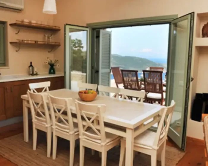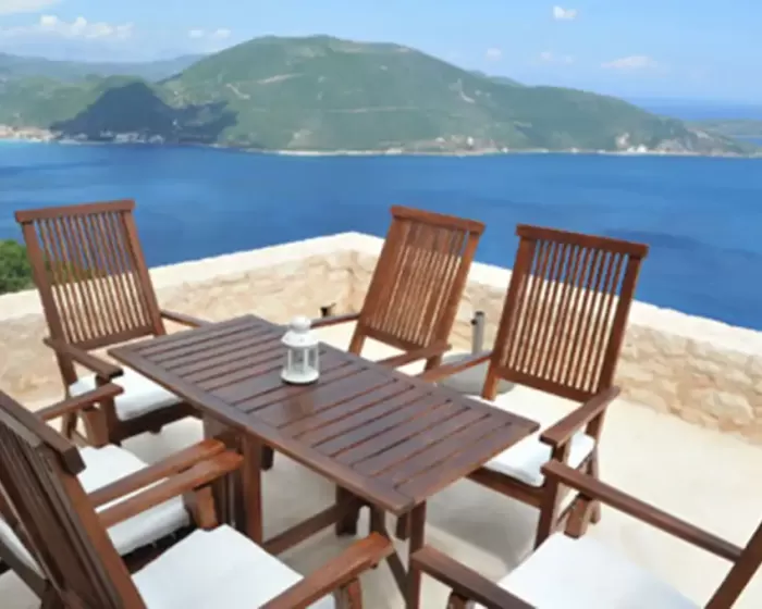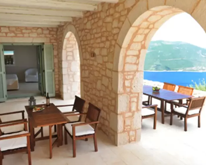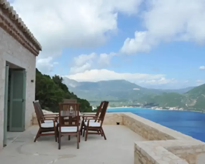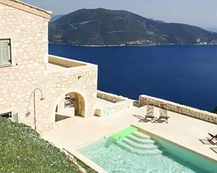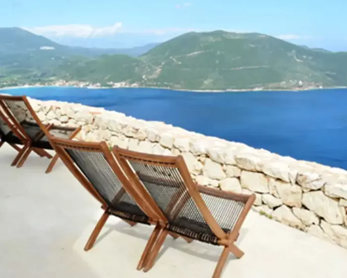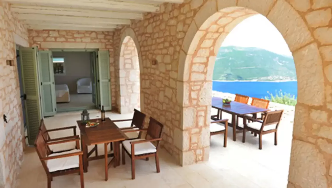 Vila Ios Vasiliki Lefkada se nalazi na brdu iznad Vasilikija, udaljena od grada 4 kilometara, a u neposrednoj blizini plaže Porto Kaciki. Vila ima 230m² i 200m² terasa. Preporuka za veće društvo kome su kvalitetet i lokacija smeštaja prioritet.