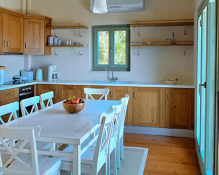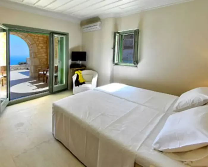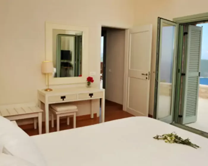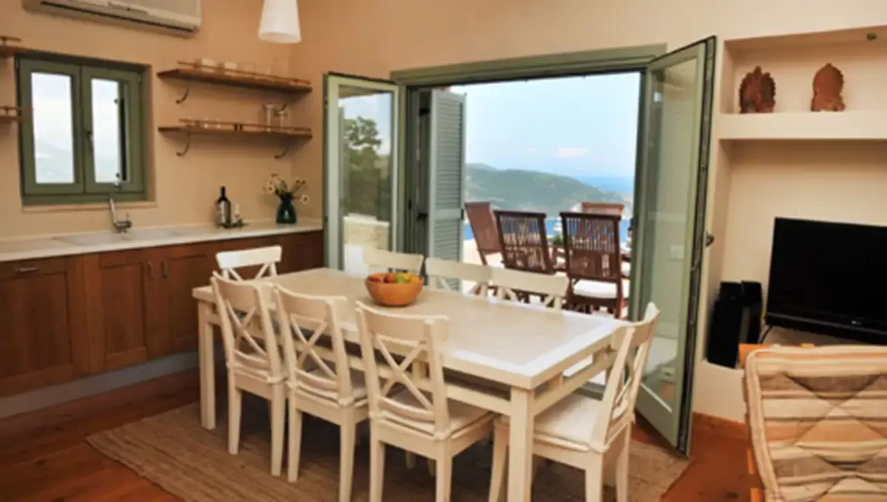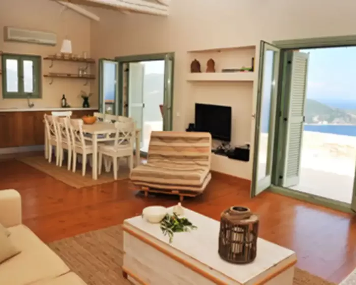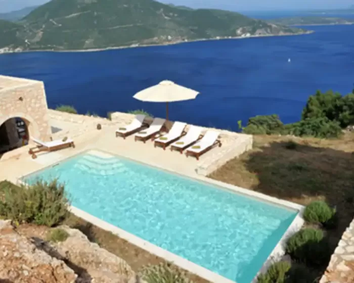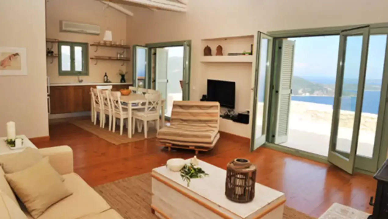 Vila Ios Vasiliki Lefkada se nalazi na brdu iznad Vasilikija, udaljena od grada 4 kilometara, a u neposrednoj blizini plaže Porto Kaciki. Vila ima 230m² i 200m² terasa. Preporuka za veće društvo kome su kvalitetet i lokacija smeštaja prioritet.