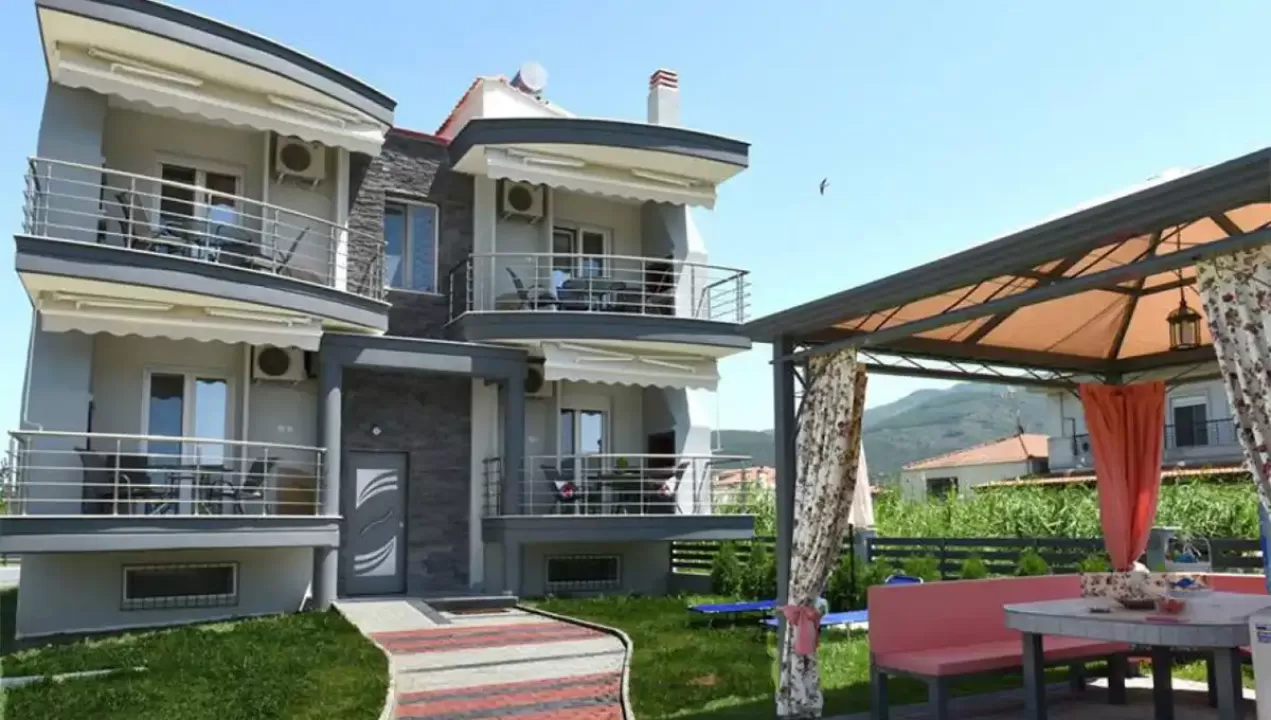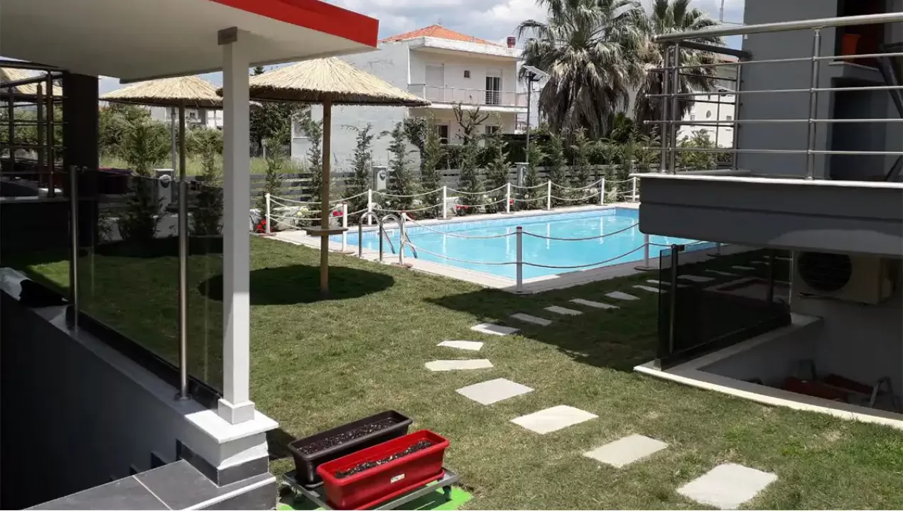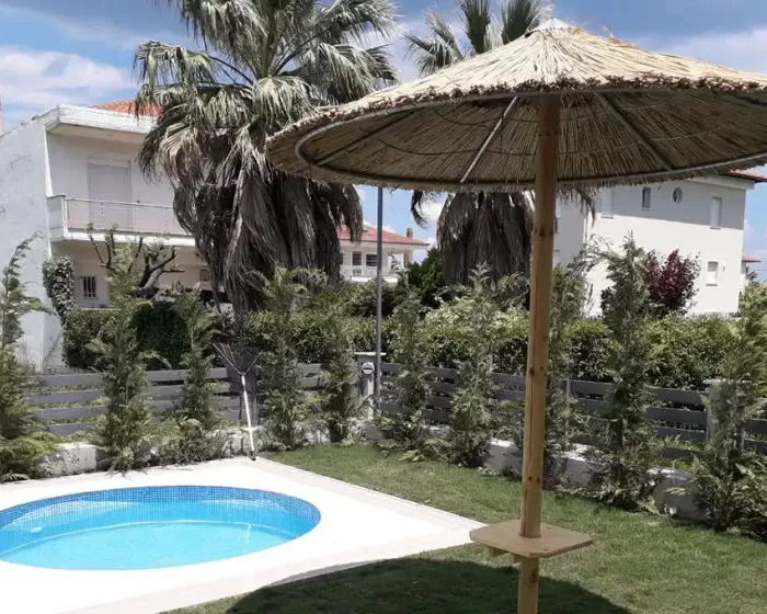 Vila Ivelinas Stavros je novoizgradjena vila sa bazenom i nalazi se u novom delu Stavrosa, na oko 250 metara udaljenosti od plaže. U blizini se nalaze, prodavnice, pekare i supermarketi. Vila poseduje dva objekta u dvorištu, usluga je najam bez ishrane.Smeštaj ne može da primi petočlane porodice.