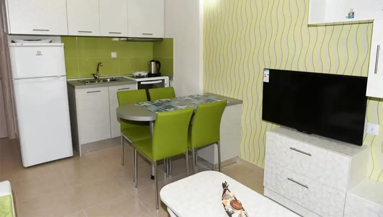 kupatilo, opremljena mini-kuhinja, klima-uredjaj, TV, komarnici, terasa sa garniturom za sedenje