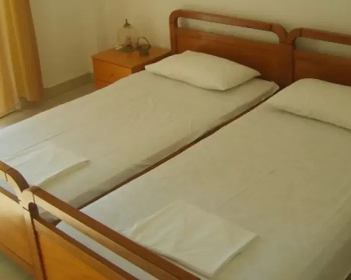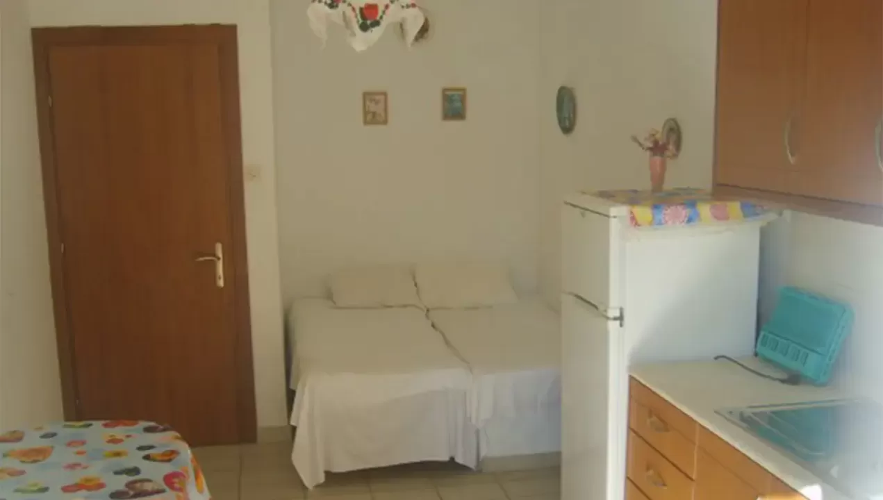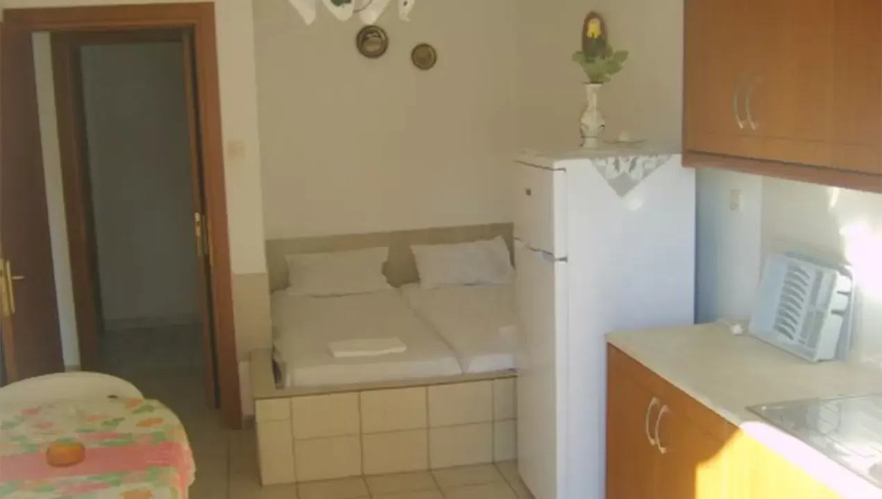 Svaki trokrevetni studio poseduje jedan francuski i jedan standardni ležaj. Svaki četvorokrevetni apartman poseduje spavaću sobu sa dva ležaja i kuhinjski deo sa osnovno opremljenom kuhinjom (frižider, rešo, posuđe i escajg srazmerno broju ležajeva) u kojoj se nalazi i jedan francuski ležaj.