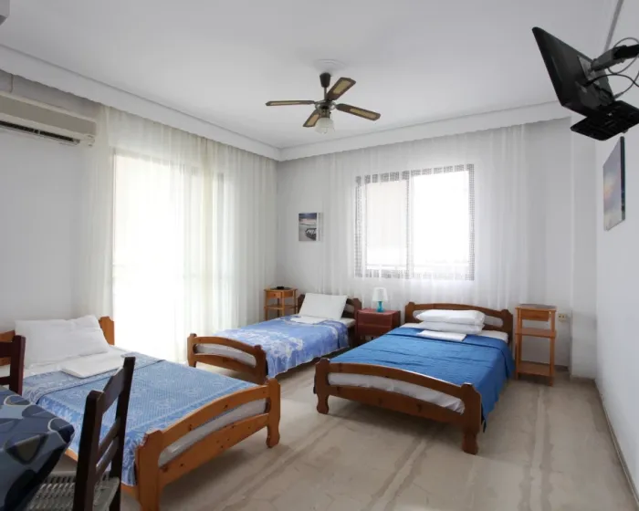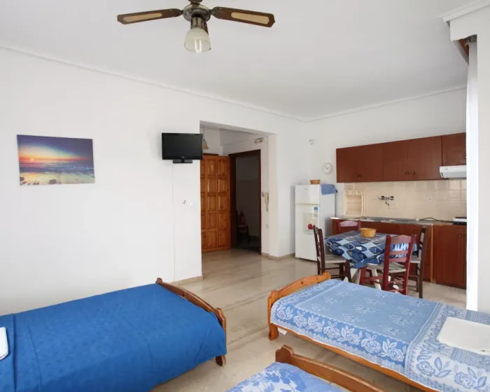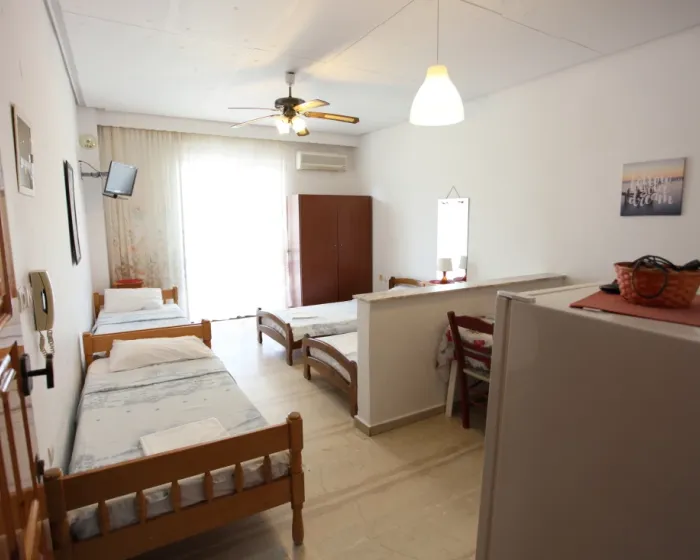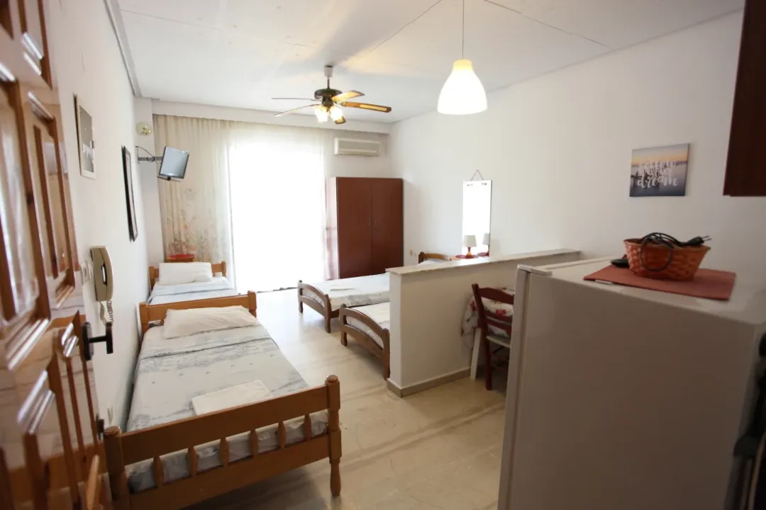 Vila Kanakis Nei Pori se nalazi na uslasku u letovalište Nei Pori, na oko 80 metara udaljenosi od uredjenog dela plaže. U našoj ponudi su dvokrevetni, trokrevetni i četvorokrevetni studiji, kao i četvorokrevetni i petokrevetni apartmani. Smeštajne jedinice imaju delimični pogled na more.