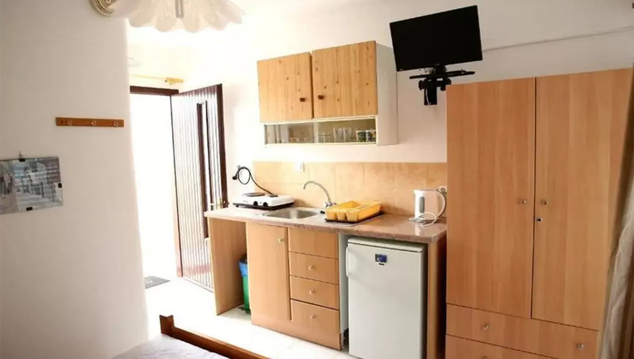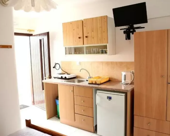 kupatilo, opremljena mini-kuhinja, klima-uredjaj, frižider, SAT-TV, terasa sa garniturom za sedenje, komarnici, dve terase
