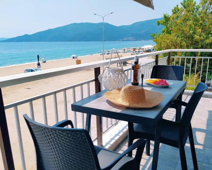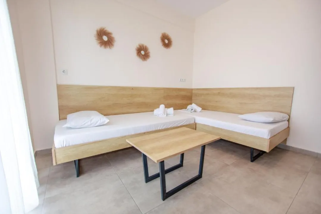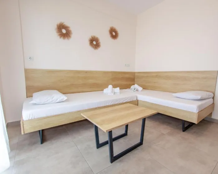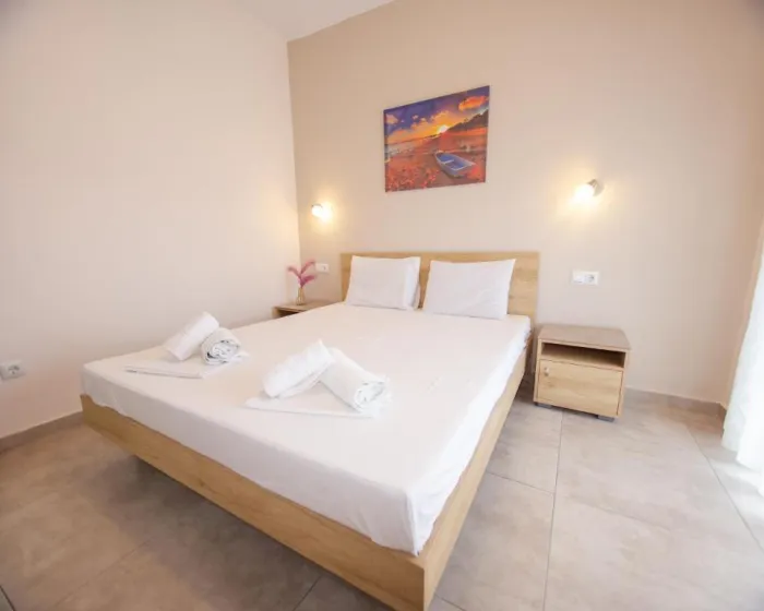 Četvorokrevetni duplex apartmani (prvi i drugi sprat) pored opremljene kuhinje, imaju dve spavaće sobe sa francuskim i sa dva standardna ležaja, kupatilo i lepu veliku teresu sa garniturom za sedenje, sa pogledom na šetalište.