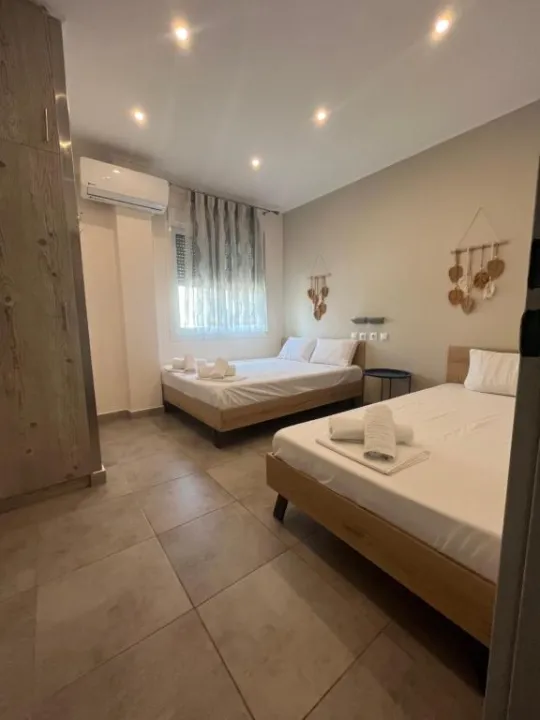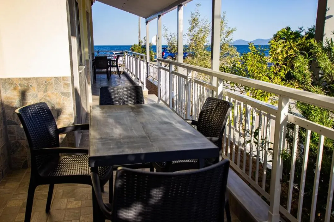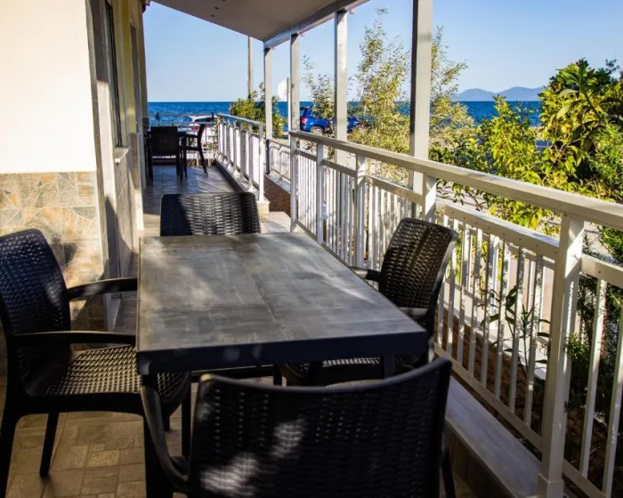 Četvorokrevetni apartman (drugi sprat) u vili Kohili sastoji se od prostorije u kojoj se nalazi kuhinja i dva standardna ležaja, spavaće sobe sa francuskim ležajem, kupatila i velike terase sa garniturom za sedenje i predivnim pogledom, bočno, na more i plažu.