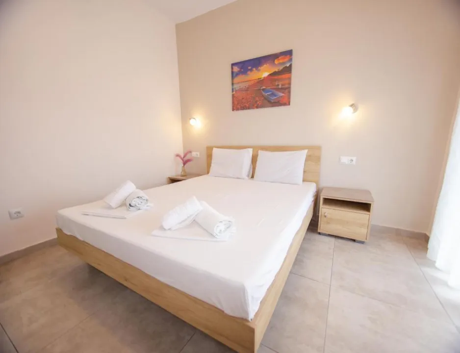 Svi apartmani su opremljeni sa po jednim klima uredjajem i bežičnim internetom (uključeni u cenu) i TV - om. Veličina apartmana je cca od 30 do 35 kvm + terasa