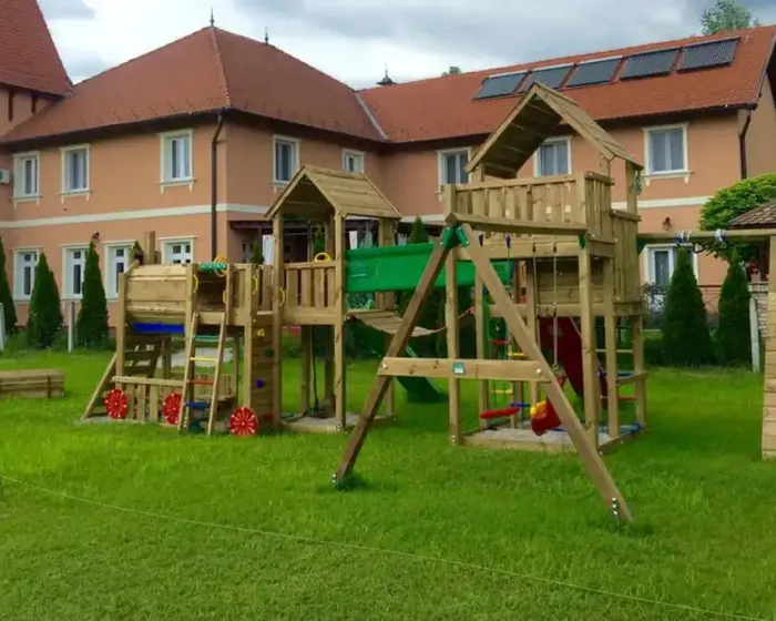 lepo uredjeno dvorište sa prostorom za roštiljanje, dečije igralište, wifi internet, parking