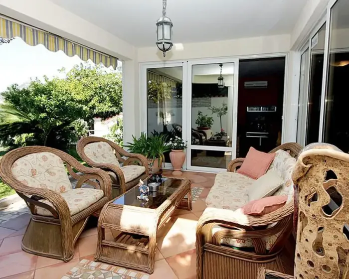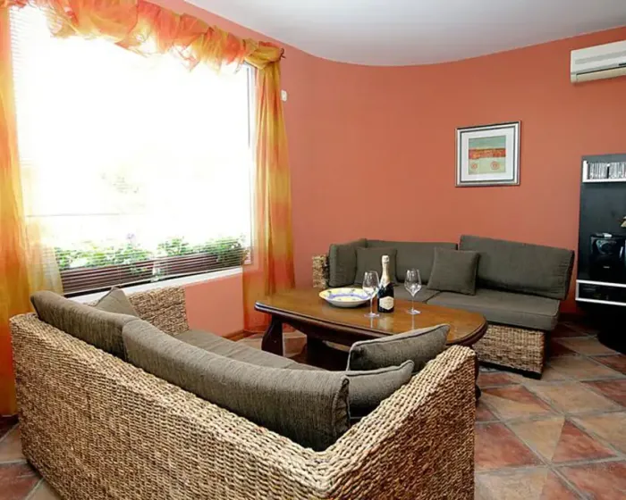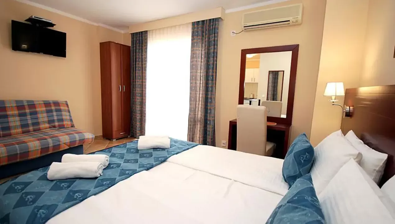 kupatilo, mini kuhinja, klima-uredjaj, SAT TV, terasa sa garniturom za sedenje.