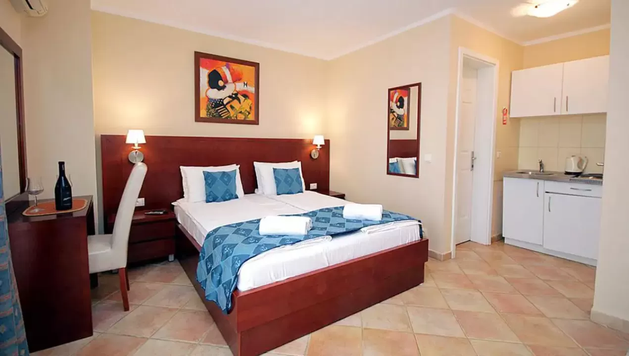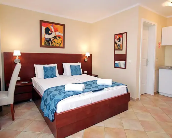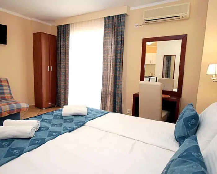 Vila nudi smeštaj tipa studia, veličine 20-40 metara. Svaki studio ima spavaću sobu, opremljenu mini kuhinju, kupatilo sa tušem, balkon ili prostranu terasu. Izuzetak su četiri studia u prizemlju koji su isto opremljeni ali bez balkona. Studia raspolažu klima uređajima, satelitskom TV, sefom, besplatnim WI-FI a usluga čišćenja, zamene peškira i posteljine je uračunata u cenu.