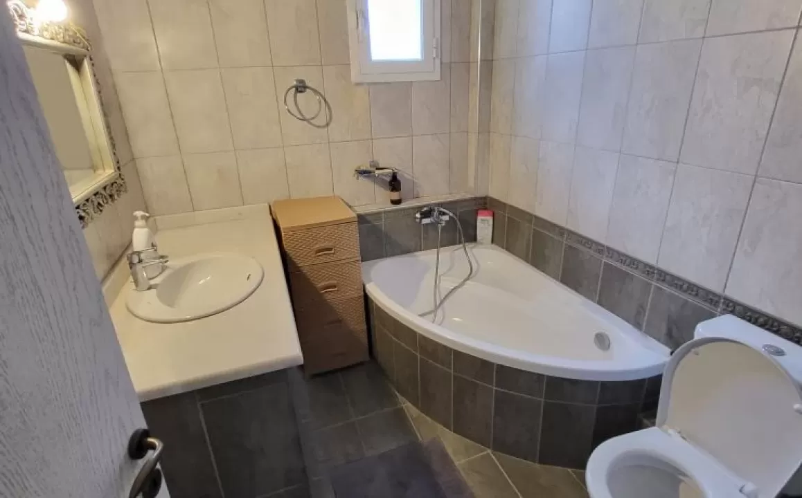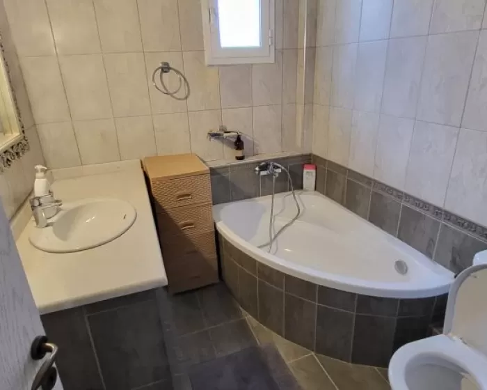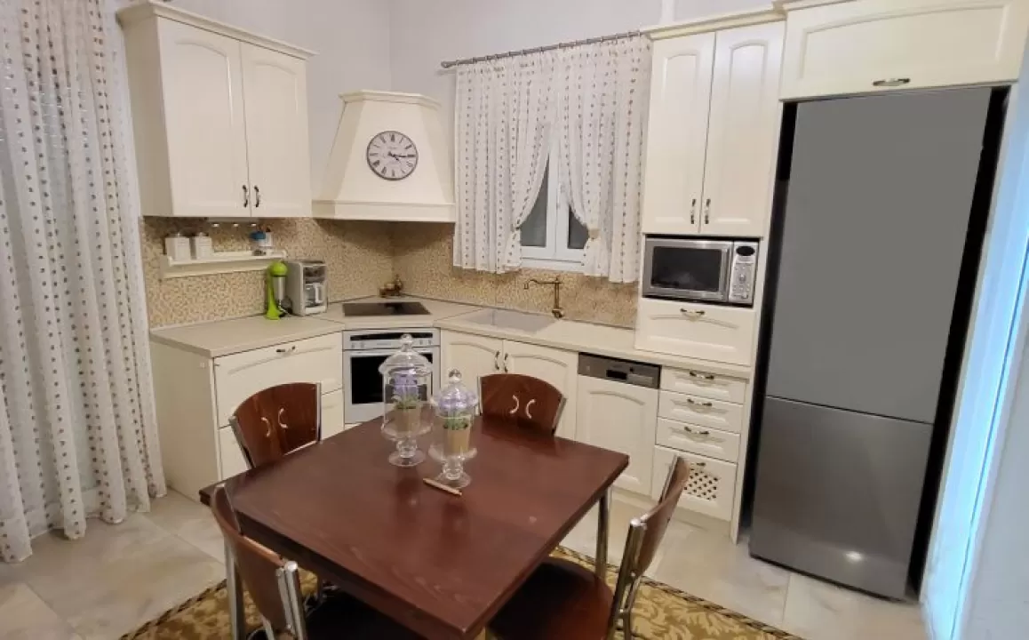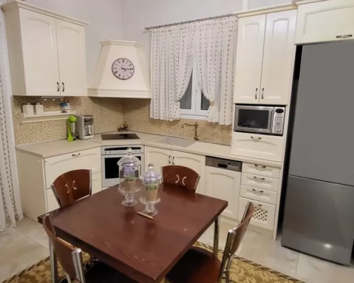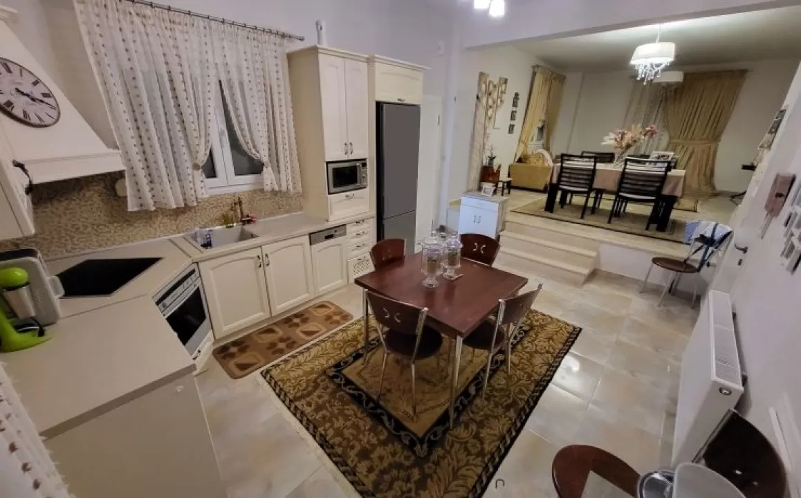 U prizemlju se nalazi dnevni boravak sa kuhinjom, trpezarijom i toaletom, dok se na spratu nalaze tri spavaće sobe i kupatilo sa đakuzijem i veš mašinom. Kuhinja je kompletno opremljena sa šporetom, mikrotalasnom, aparatom za kafu.