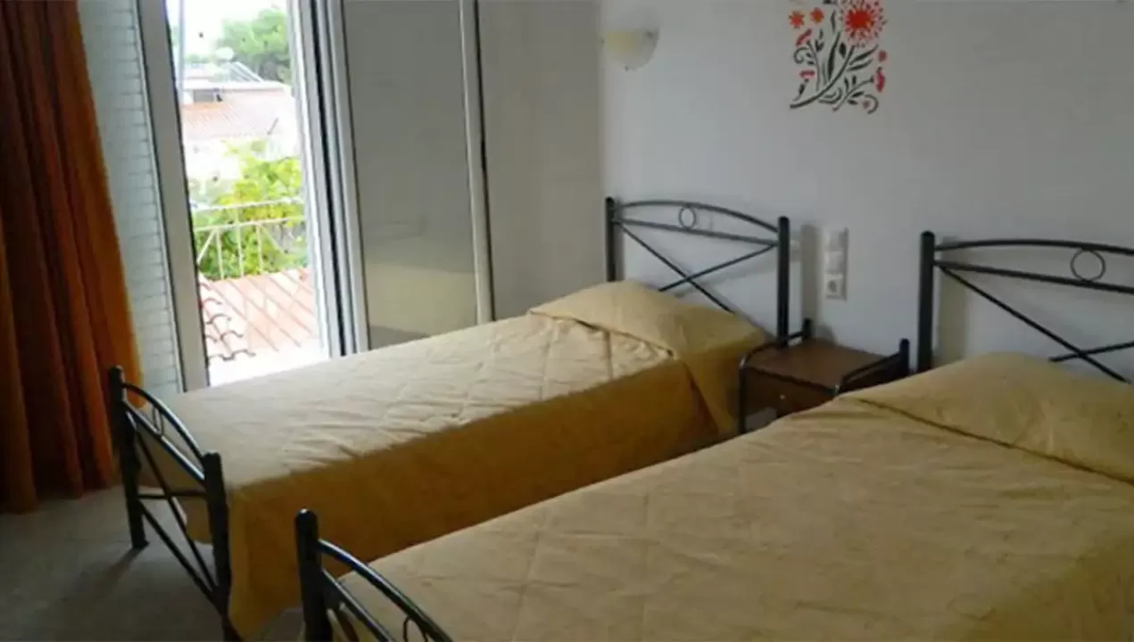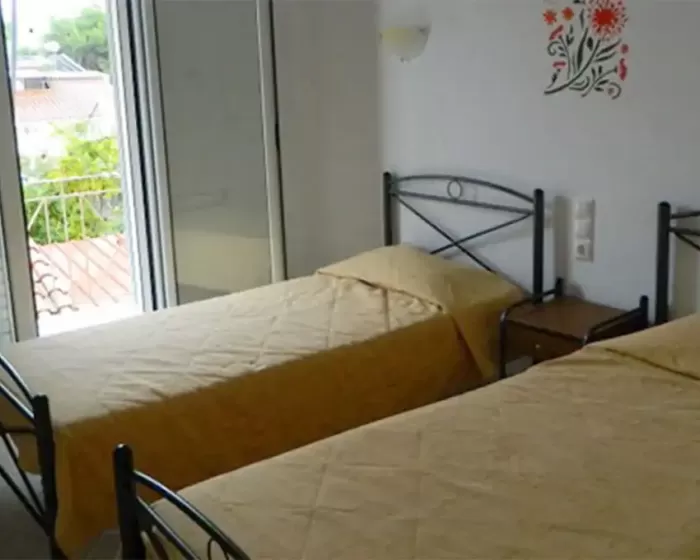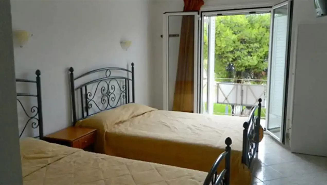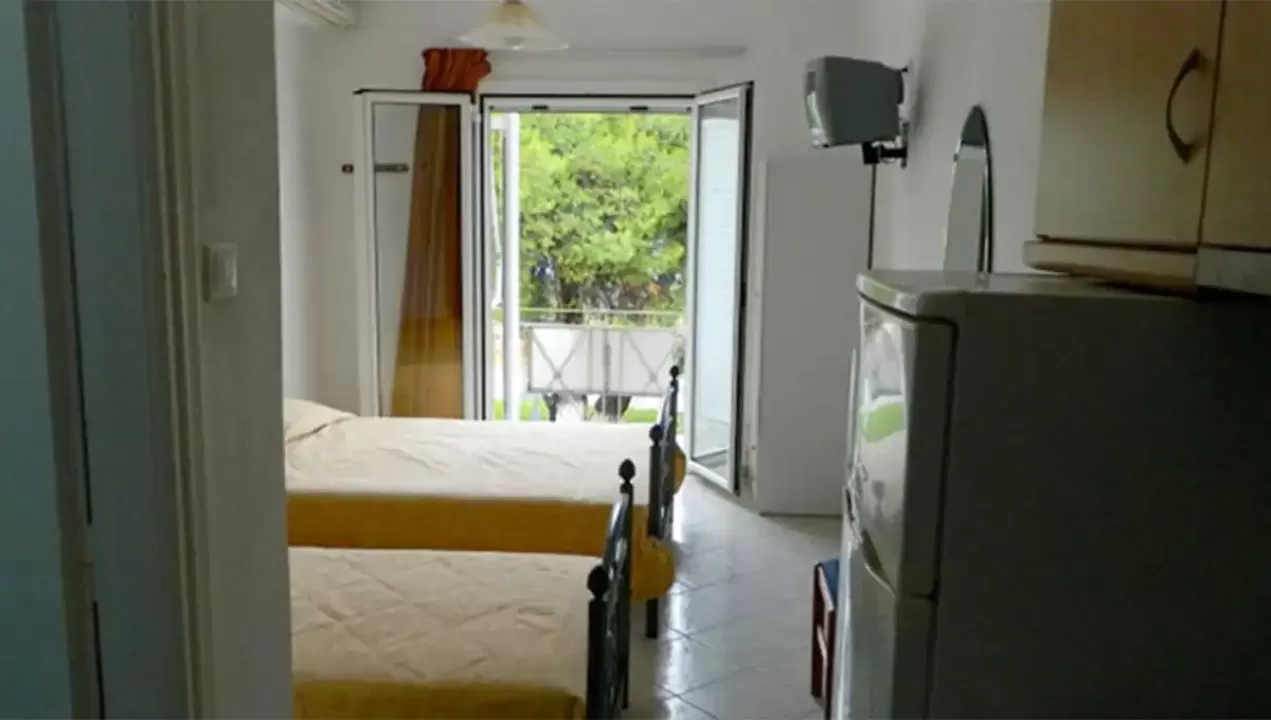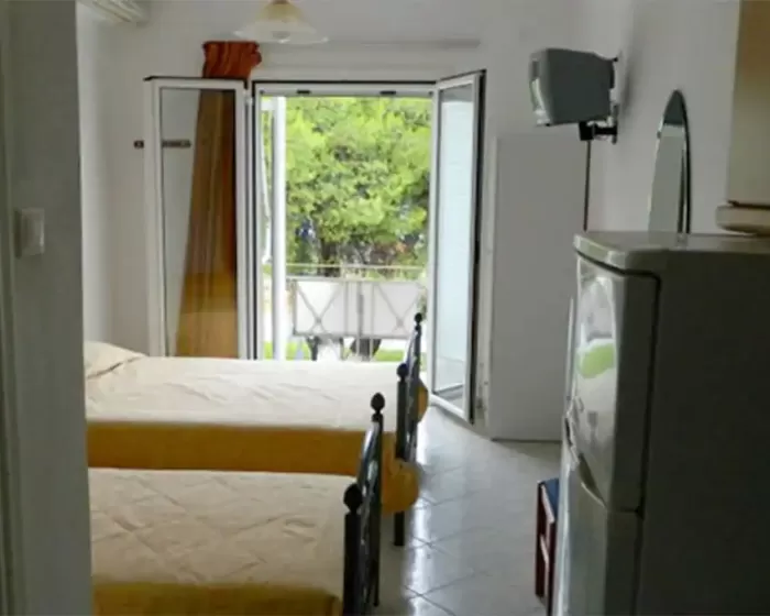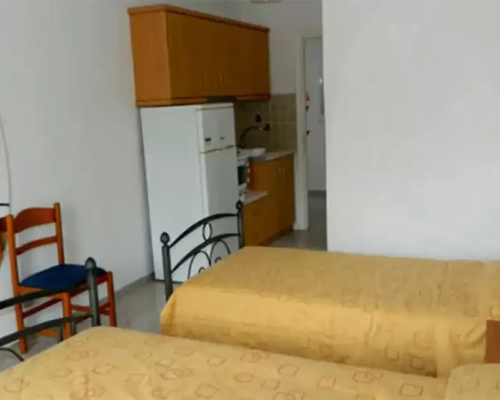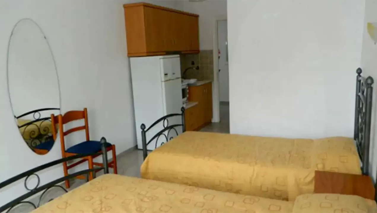 Tip smeštaja:1/2 studio - u jednoj prostoriji mini kuhinja i dva obična ležaja ili jedan bračni ležaj. 1/3 studio - u jednoj prostoriji mini kuhinja, jedan običan ležaj i jedan bračni ležaj.+1 označava pomoćni ležaj koji može koristiti isključivo dete do 9.99 godina starosti.U pojedinim slučajevima moguća su odstupanja mera ležaja od našeg standarda. Grčki standard za normalni ležaj je 185cm-200cm sa 75-90cm, a bračni ležaj (dve osobe) 185-200cm sa 120-155cm.