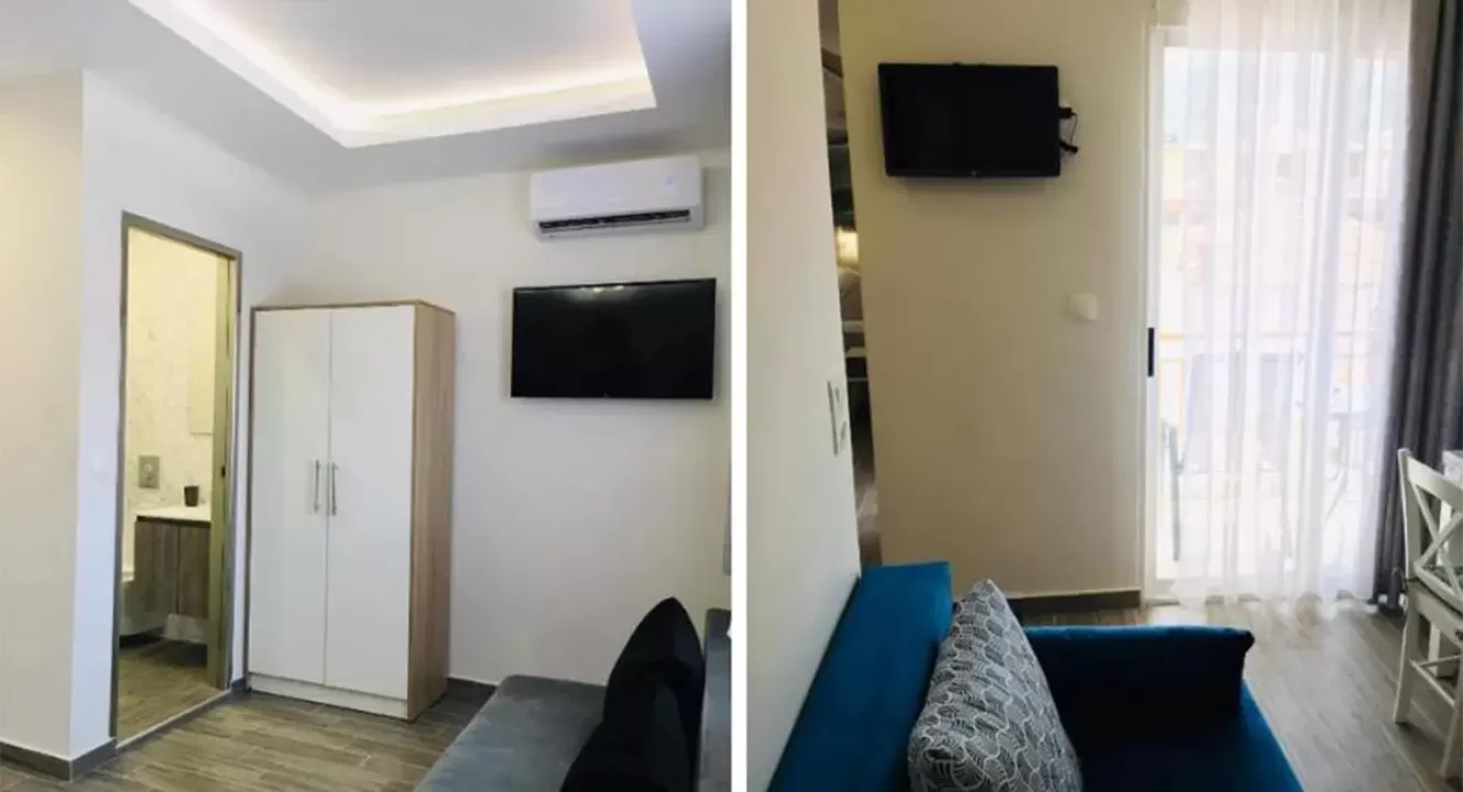 kupatilo, opremljena mini-kuhinja, klima-uredjaj, TV, balkon sa garniturom za sedenje