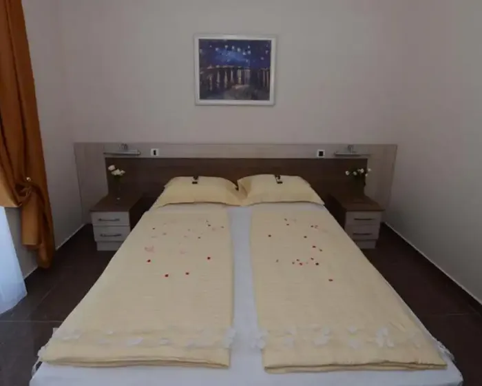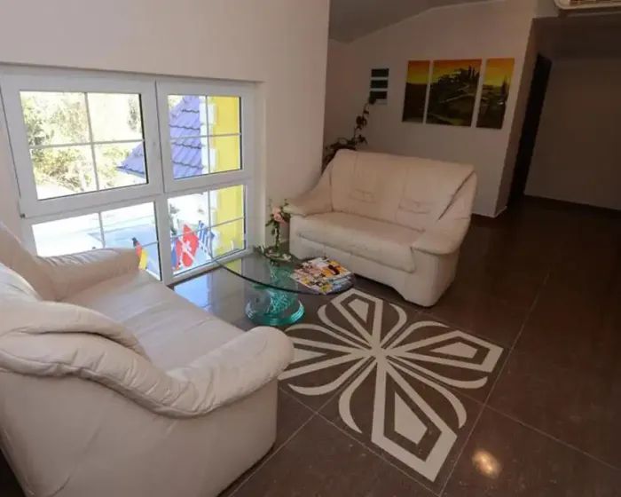 Vila poseduje 12 luksuzno opremljenih soba sa TV-om, mini barom, kupatilom i terasom. Sobe su dvokrevetne (sa odvojenim i franckuskim lezajima) i trokrevetne. Obezbedjen je parking sa video nadzorom i besplatan WI-FI. Poseduje zajednicku kuhinju sa trpezarijom. Mogu se besplatno iznajmiti bicikli za obilazak jezera. Recepcija radi 24 sata, sobe se ciste svakodnevno sa zamenom peskira.