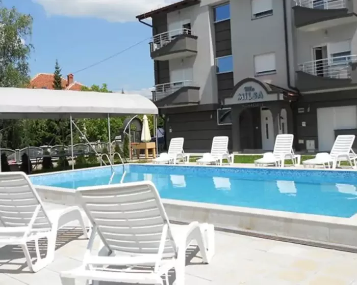 Vila Milsa Lux Sokobanja se nalazi u blizini hotela Moravica i hotela Sunce. Glavno (mermerno) šetalište je udaljeno oko 800 metara od samog smeštaja. Vila raspolaže sa 12 studija i 4 apartmana za smeštaj dve, tri i četiri osobe. Porodicama sa malom decom je na raspolaganju i krevetac, uz obaveznu najavu pre početka usluge. Od dodatnih sadržaja za Vas smo obezbedili usluge profesionalnog masera kao i jednodnevne izlete za organizovane grupe u pratnji licenciranog vodiča (uz doplatu). Takođe, za naše goste smo obezbedili popust na ulaznice u spa centar Soko Terme.Ishrana: doručak, ručak i večera - švedski sto.