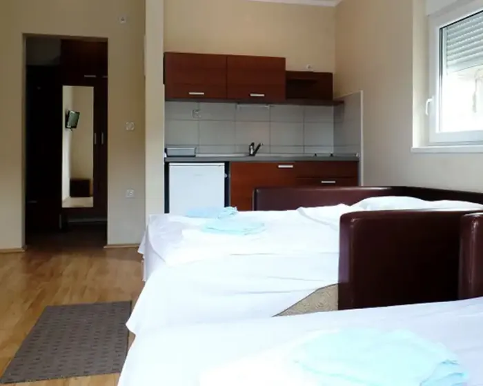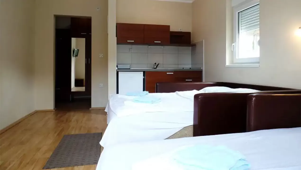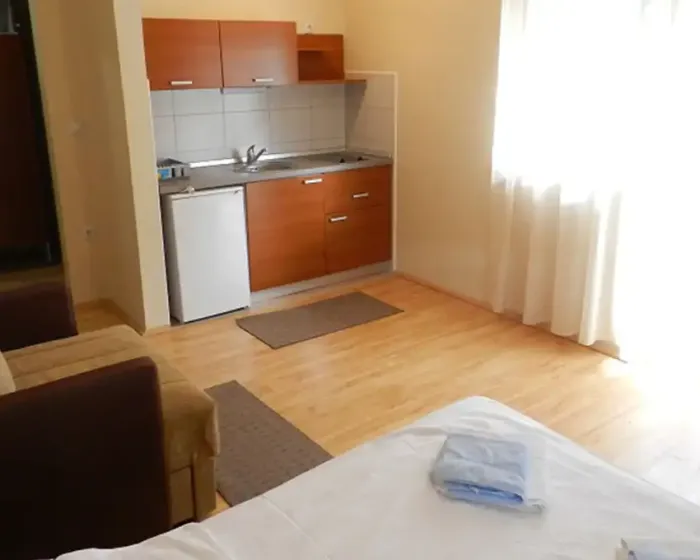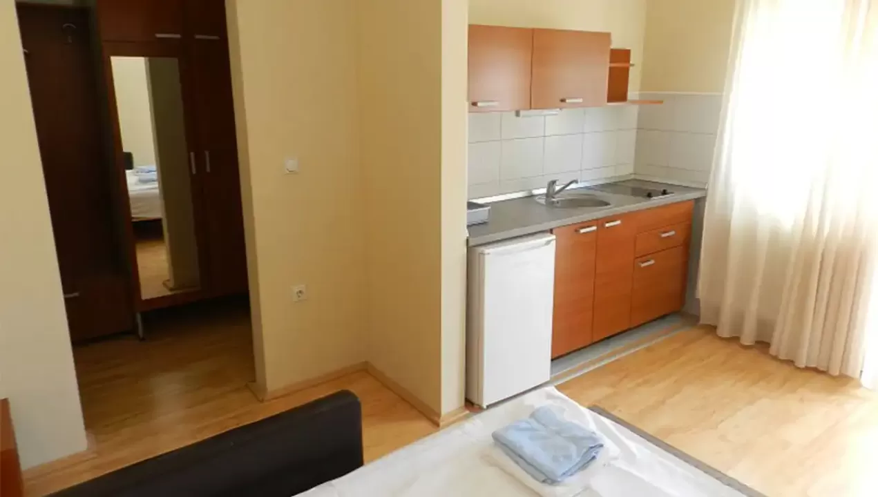 kupatilo, mini kuhinja, frižider, klima-uredjaj, CAT-TV, telefon
