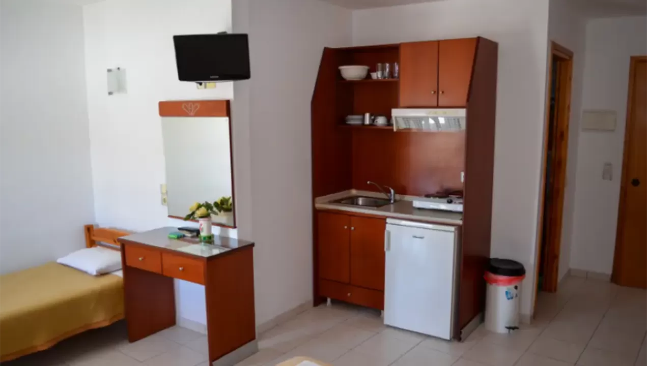 1/2 garsonjera - u jednoj prostoriji čajna kuhinja, u drugoj dva standardna ležaja