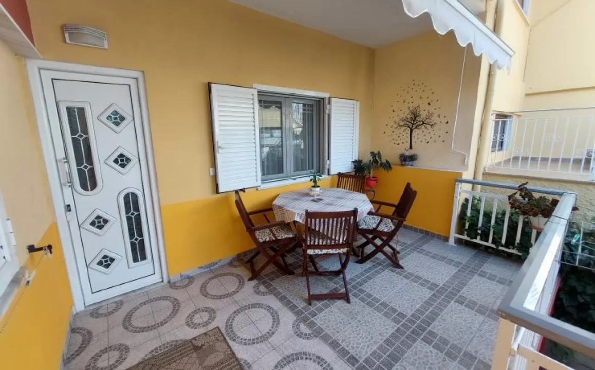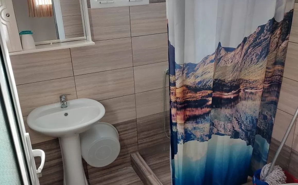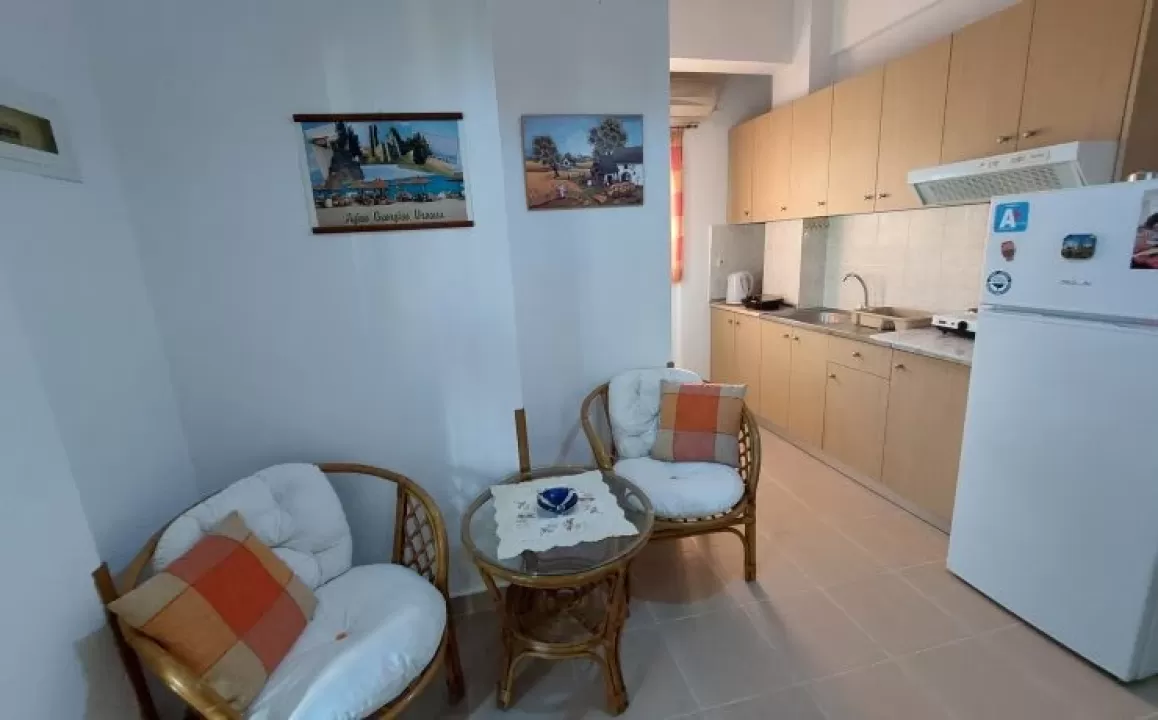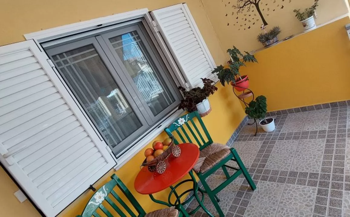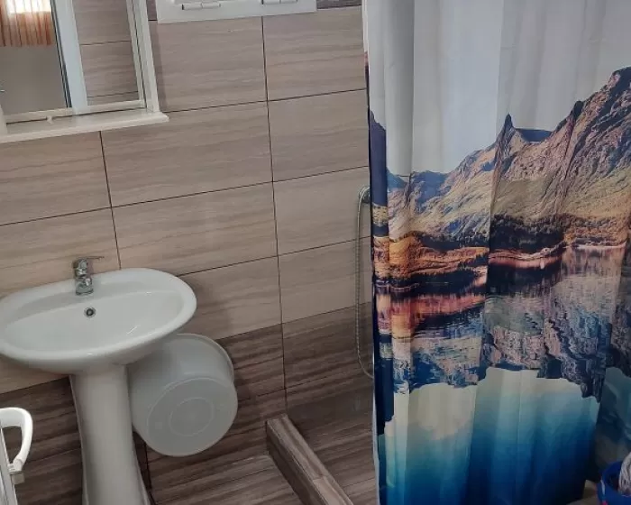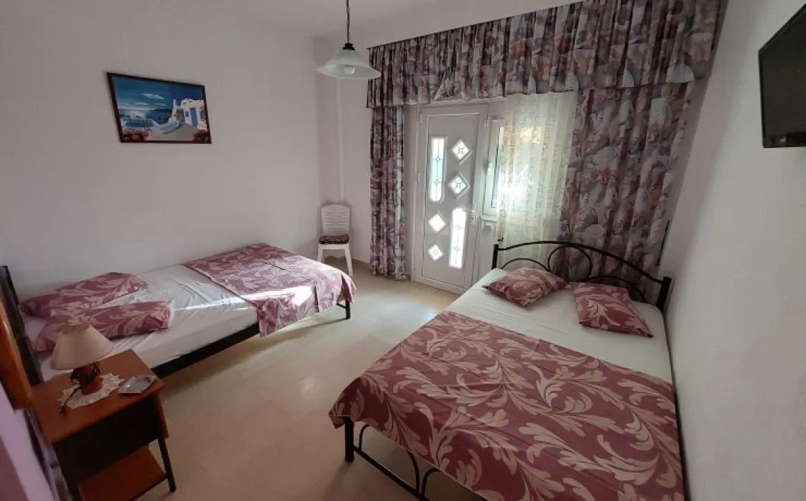 Kuhinja (veliki frižider sa zamrzivačem, rešo sa dve ringle na struju, aspirator, mali toster, posudje i pribor), kupatilo, dva manja francuska ležaja širine 130 cm, orman, noćni ormarić, ogledalo, televizor, WI FI (besplatan), klima uredjaj, terasa sa garniturom za sedenje i tenda. Predvidjeni su za smeštaj maksimalno dvoje odraslih i dvoje dece do 11.99 godina, ili troje odraslih i jedno dete do 11.99 godina.