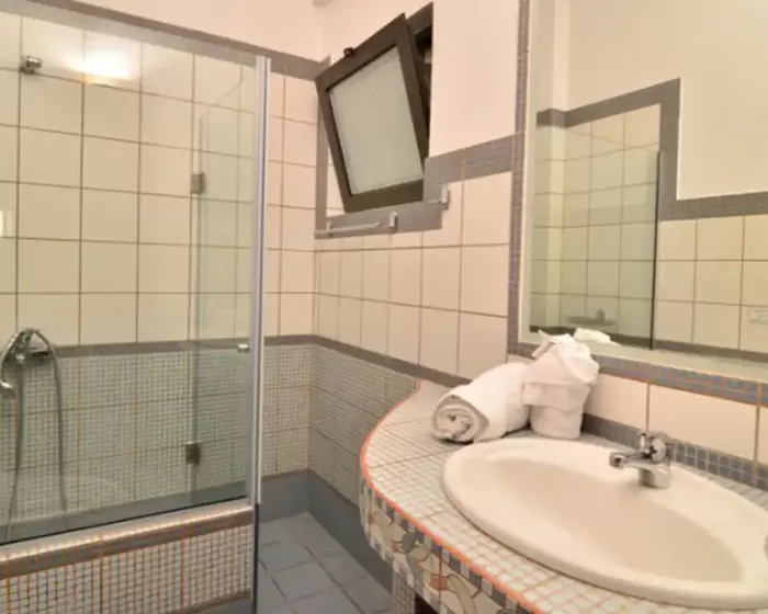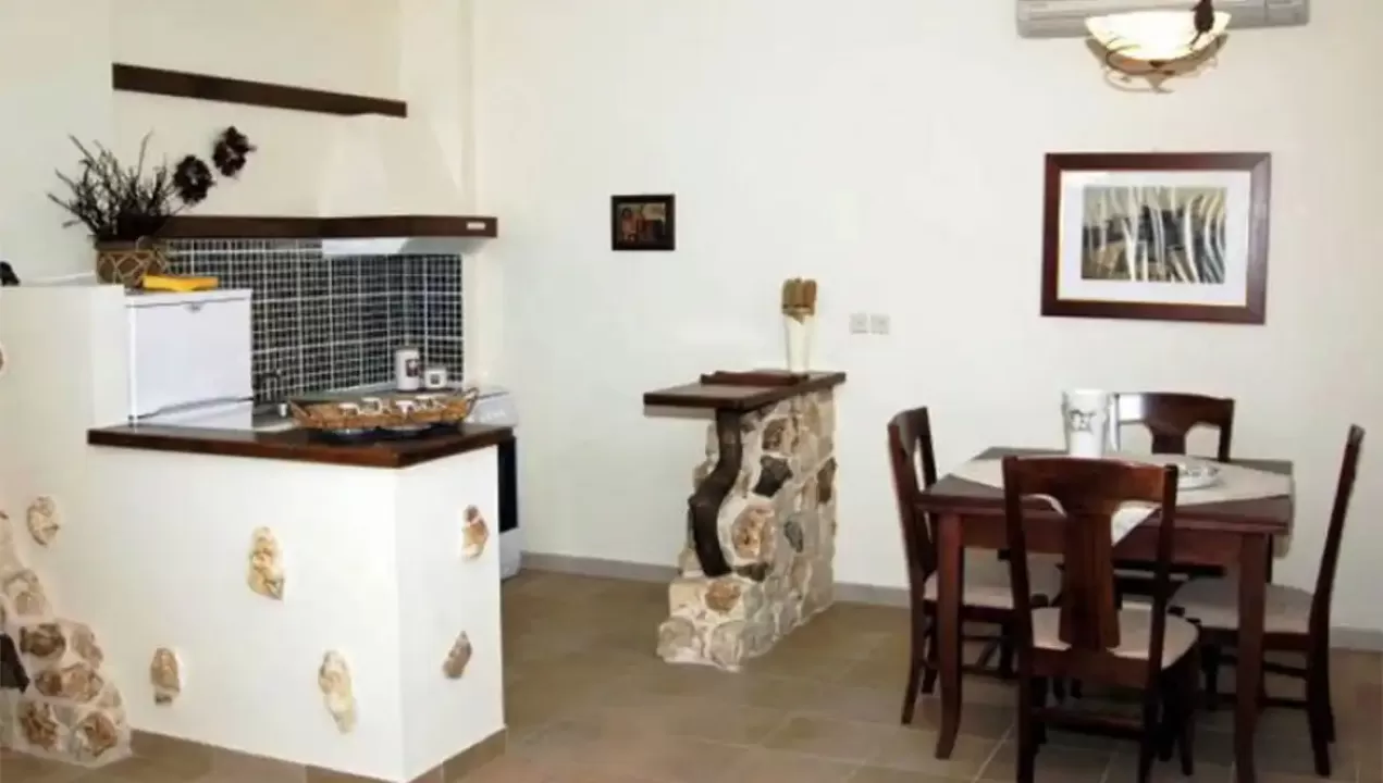 Tip smeštaja:1/4 apartman - u jednoj prostoriji čajna kuhinja i dve sofe, u drugoj prostoriji bračni ležaj1/4+1 apartman - u jednoj prostoriji čajna kuhinja, jedna sofa i jedan kanabe, u drugoj prostoriji bračni ležajU pojedinim slučajevima moguća su odstupanja mera ležaja od našeg standarda. Grčki standard za ležaj je 185 cm sa 75-80 cm, a bračni ležaj (dve osobe) 185-200 cm sa 120-155 cm.