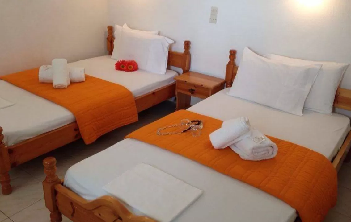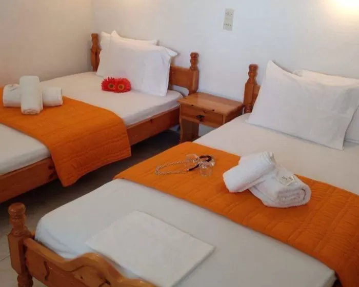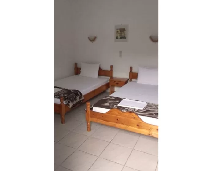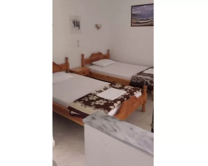 Svi studiji i apartmani se nalaze na prvom spratu i imaju dva francuska ležaja (po grčkim standardima, širine 110cm) namenjena za smeštaj dve do četiri osobe, ili dva francuska ležaja (po grčkim standardima) I dva standardna solo ležaja, namenjena za smeštaj četiri osobe