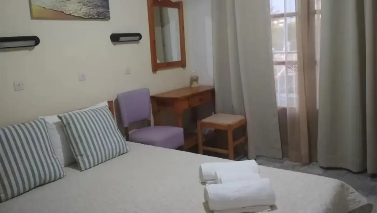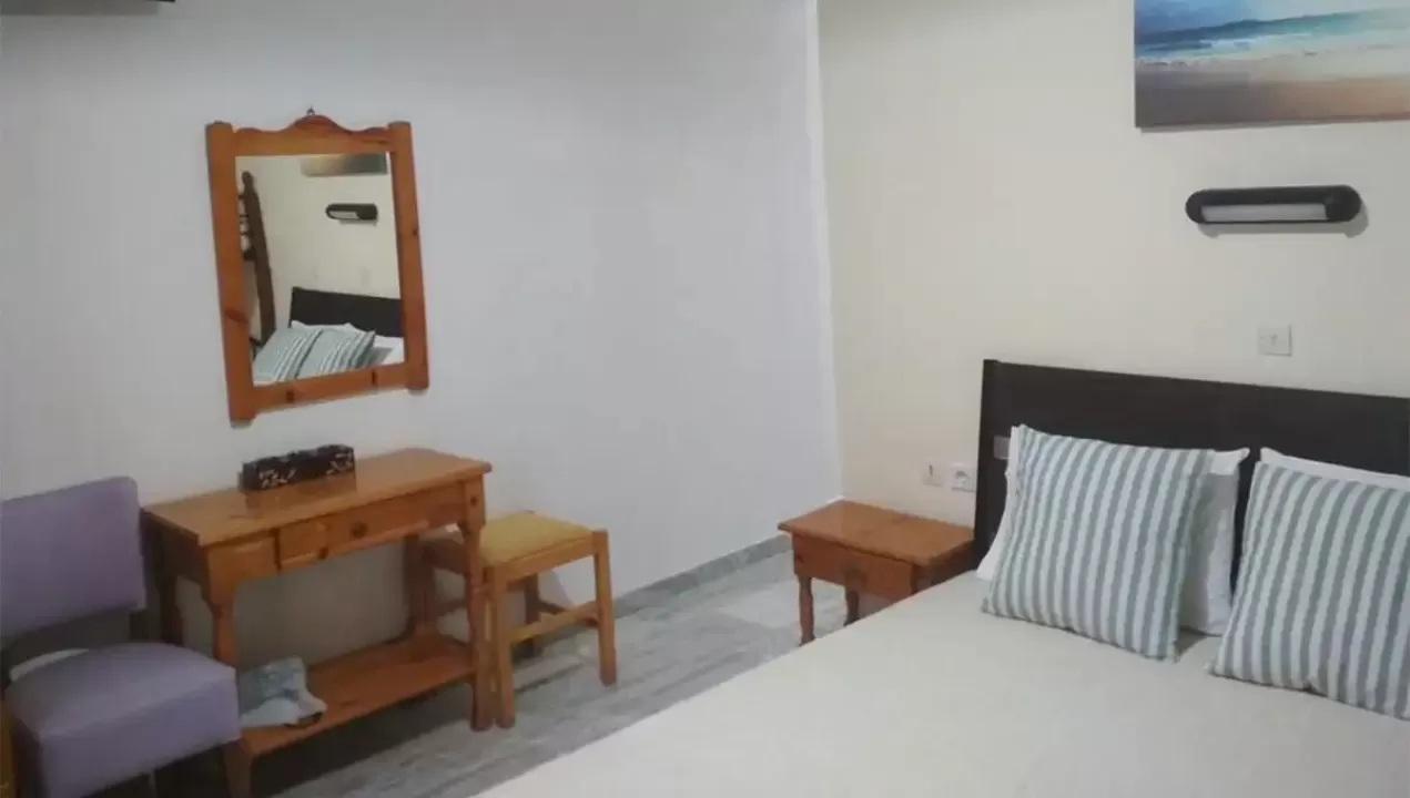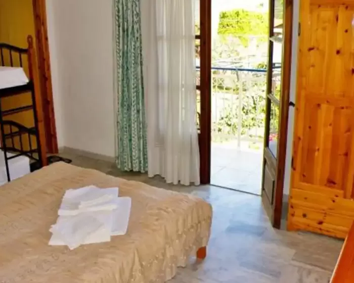 Tip smeštaja:1/2 studio - u jednoj prostoriji čajna kuhinja i jedan bračni ležaj.1/2+1 studio - u jednoj prostoriji čajna kuhinja, jedan bračni i jedan pomoćni ležaj.1/3 studio - u jednoj prostoriji čajna kuhinja i jedan bračni i jedan običan ležaj.1/2+2 studio - u jednoj prostoriji čajna kuhinja, jedan bračni ležaj i kreveti na sprat.U pojedinim slučajevima moguća su odstupanja mera ležaja od našeg standarda. Grčki standard za ležaj je 185 cm sa 75-80 cm, a bračni ležaj (dve osobe) 185-200 cm sa 120-155 cm.