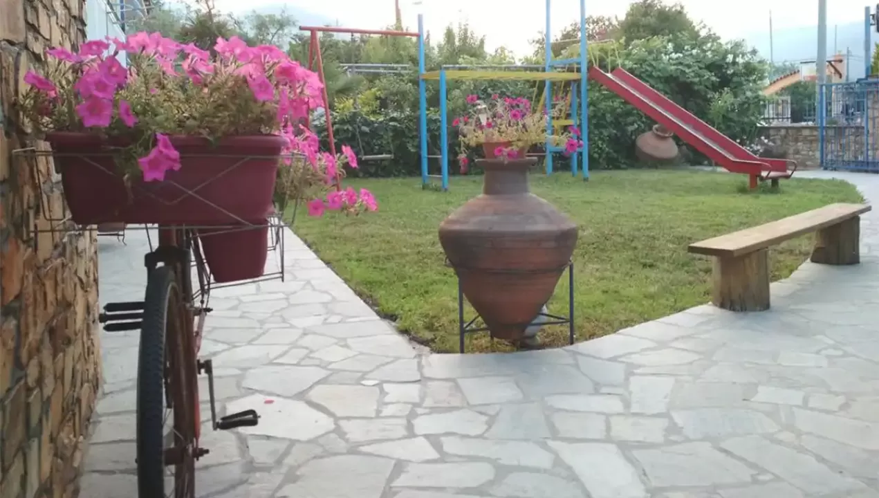 Vila Olga Skala Potamia Tasos se nalazi na oko 400 metara udaljenosti od plaže, u mirnom delu letovališta Skala Potamia, okružena zelenilom, mirom i prirodom. Centar letovališta sa restoranima, kafićima, prodavnicama i ostalim turističkim sadržajima, udaljen je oko pola kilometra od samog smeštaja. Centar Limenasa, najvećeg grada na ostrvu, udaljen je oko 14 kilometara. Vila Olga Skala Potamia Tasos raspolaže studijima u kojima mogu boraviti 2-4 osobe. Gostima je na raspolaganju roštilj, prostor za sedenje i igralište za decu u dvorištu.