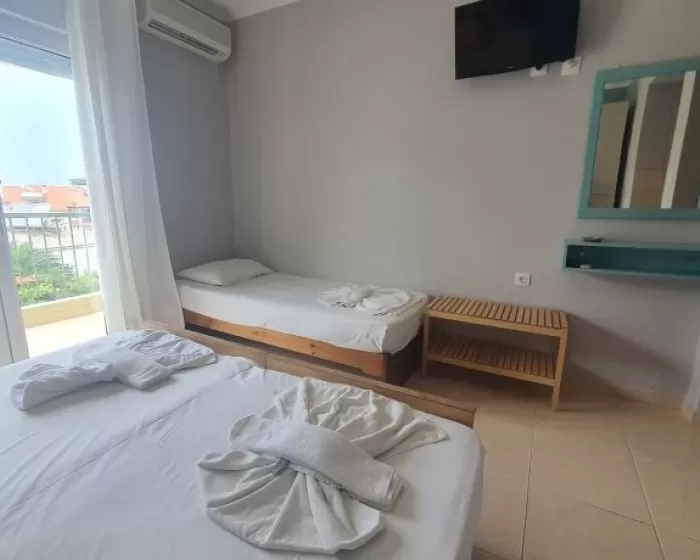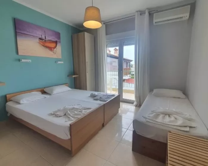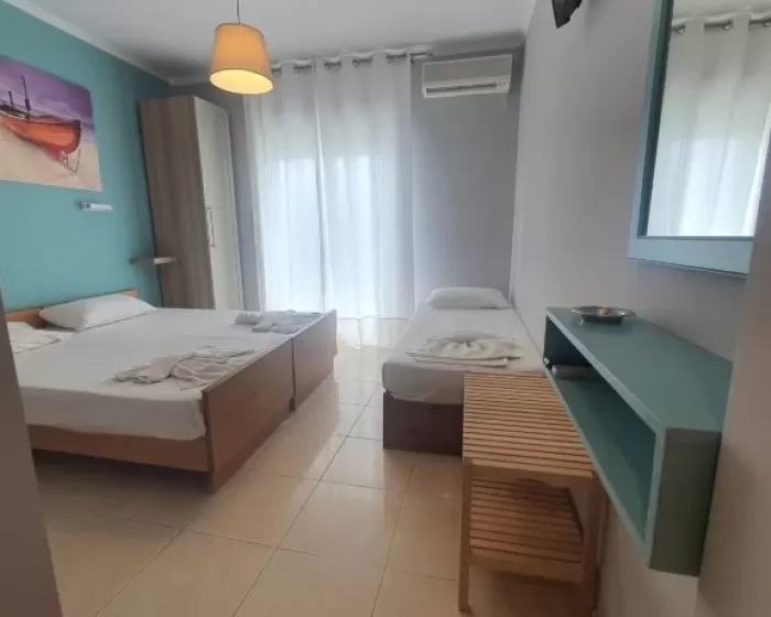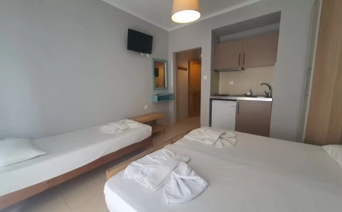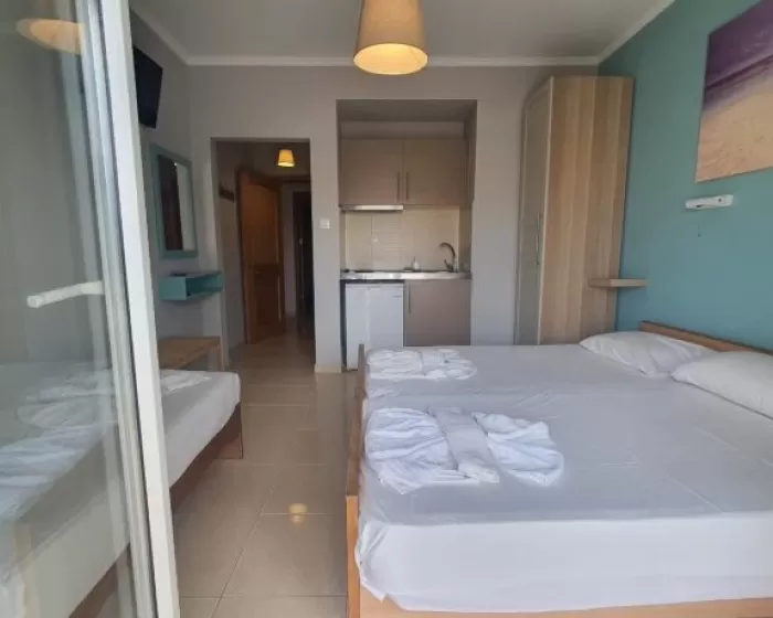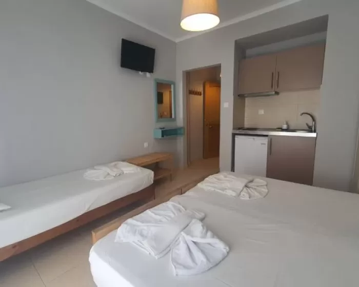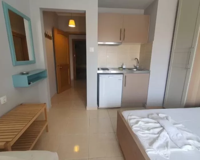 U ponudi imamo dvokrevetne i trokrevetne studije, koji imaju pogled ka ulici ili ka dvorištu. Dvokrevetni studio sa * je opremljen francuskim ležajem i ima pogled pozadi, na zid susedne vile.