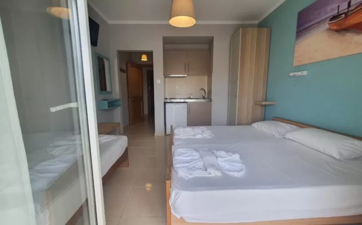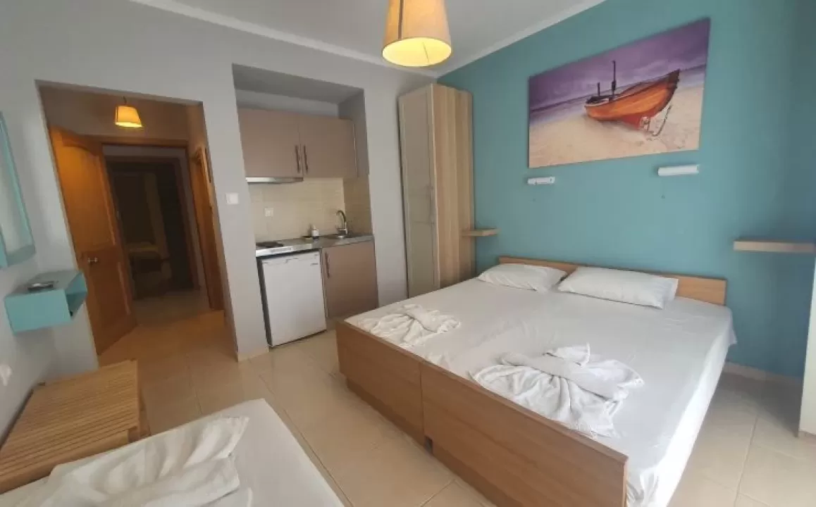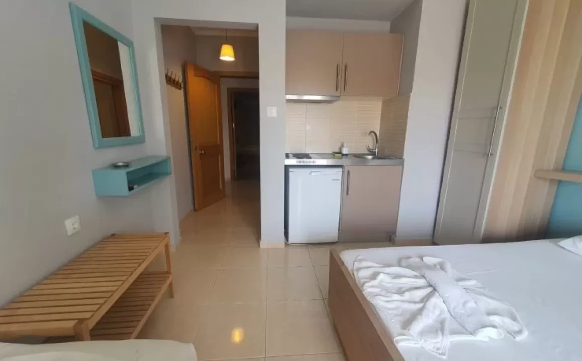 kupatilo, opremljena mini-kuhinja, klima-uredjaj, TV, terasa sa garniturom za sedenje