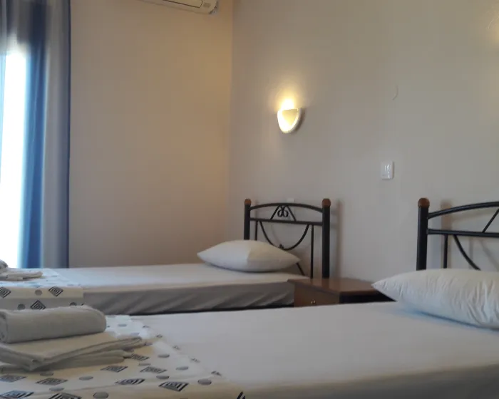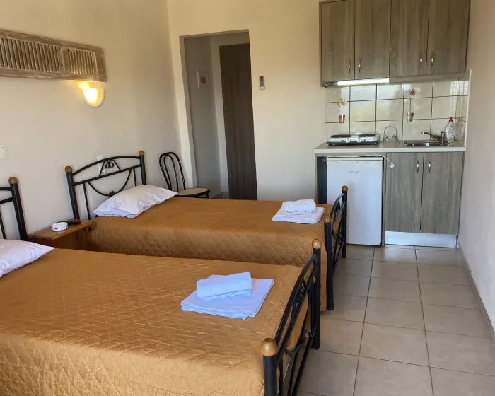 Vila Ourania Neos Pirgos je još jedna bila iz ponude agencije koja se nalazi na samoj plaži, u nekih 100 metara udaljenosti od centra letovališta Neos Pirgos. U svom sastavu za smeštaj gostiju, Ourania ima dvokrevetne i trokrevetne studije.