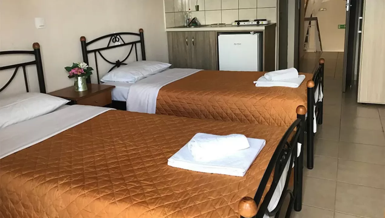 Vila Ourania Neos Pirgos Evia se nalazi na ekskluzivnoj lokaciji, gde zelenilo grli proletnilo, na samoj plaži letovališta. Vila raspolaže trokrevetnim ili dvokrevetnim studijima smeštenim na drugom spratu, sa pogledom na more i na dvorište. U neposrednoj blizini smeštaja nalaze se svi potrebni turistički aranžmani. Promena posteljine je jednom u toku boravka, za goste je obezbeđen besplatan wifi internet.