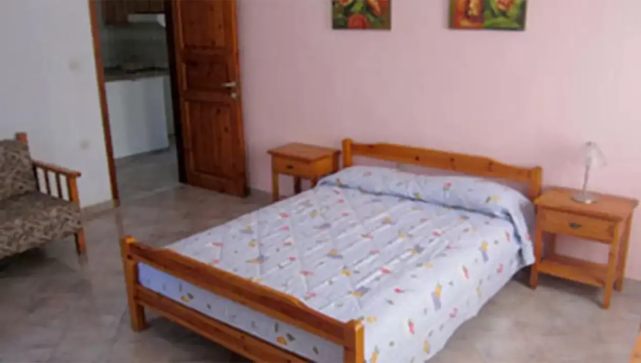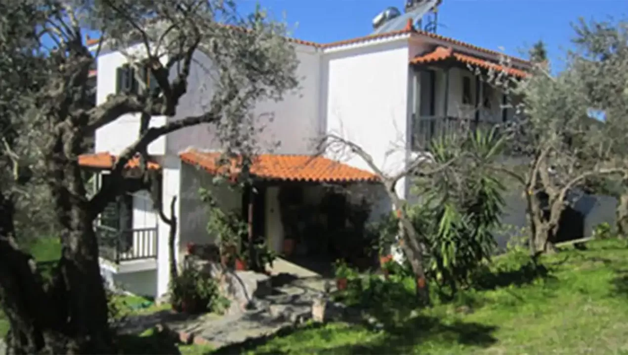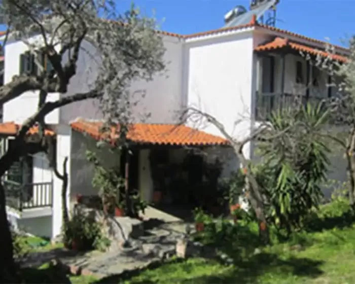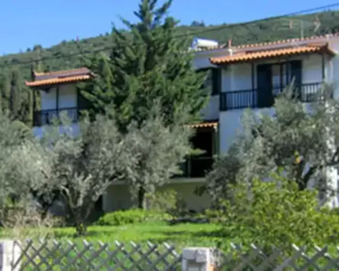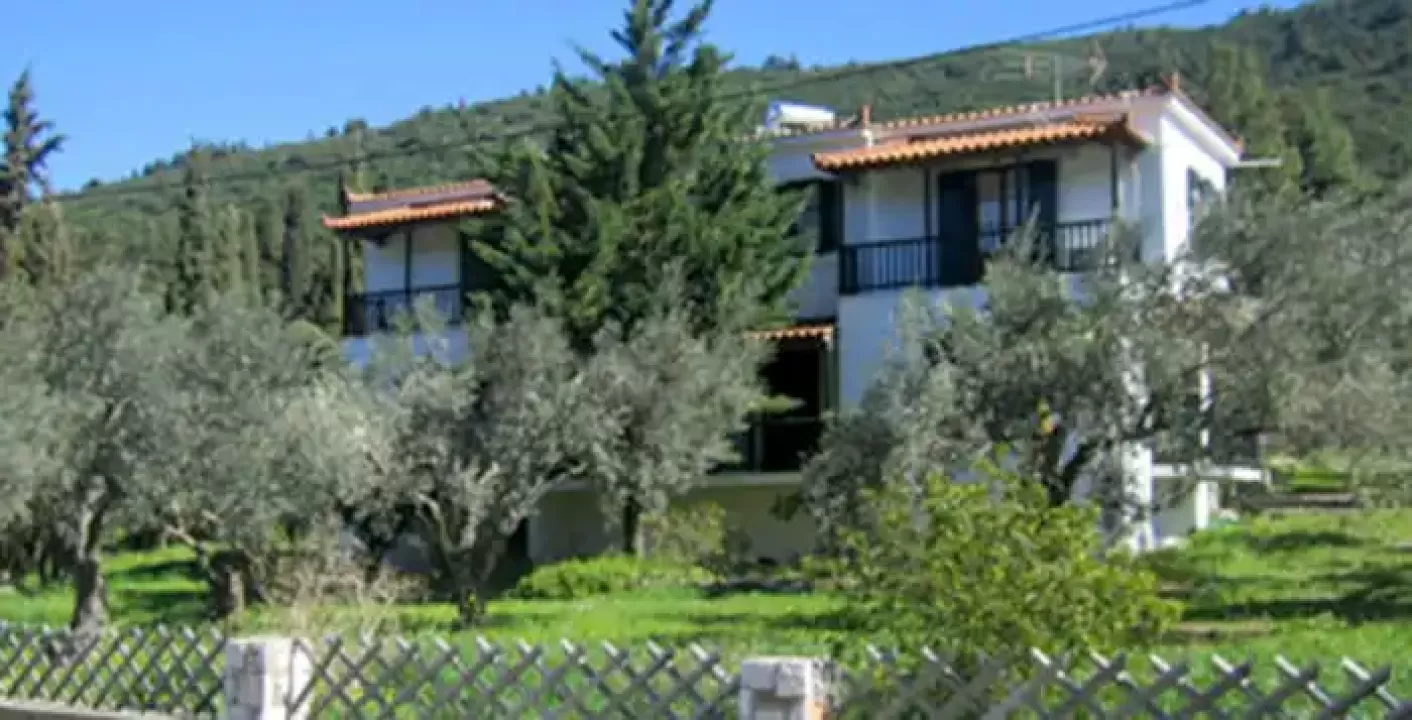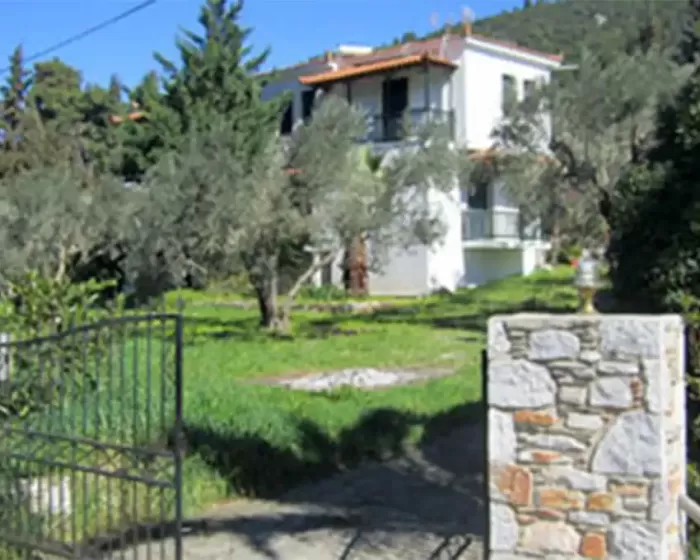 Vila Panos je starijeg datuma, smeštena je u prelepom mediteranskom vrtu, okružena cvećem i maslinama. Nalazi se na odličnj lokaciji, na svega oko 4 kilometra od Hore (grada Skopelosa), u malom mest Stafilos, sa prelepim pogledom na okolinu, planinu i more, Od plaže je udaljena oko 450 metara. Plaža Stafilos je jedna od najlepših uredjenih plaža na ostrvu, peščana je, okružena borovima i okupana besprekorno čistim, kristalno bistrim, plavim morem. Vila se satoji iz dvokrevetnih studija na visokom prizemlju i četvorekrevenih apartmana na prvom spratu, sa pogledom na vrt ili ka moru u daljini. Opremljeni su TV-om, bežičnim internetom i jednim klima uredjajem (uračunati u cenu). Dvokrevetni i dvokrevetni + 1 studiji sadrže opremljenu kuhinju, spavaću sobu sa dva standardna ležaja i pomoćnim na otvaranje, kupatilo i manju terasu sa garniturom za sedenje. Veličina studija je cca 22 - 24 kvm + terasa. Četvorokrevetni + 1 apartmani sadrže opremljenu kuhinju, šankom odvojen deo u kojem se nalaze dva standardna ležaja, spavaću sobu sa dva standardna ležaja i fotelja na otvaranje, kupatilo i manju terasu sa garniturom za sedenje. Veličina apartmana je cca 40 kvm + terasa. Vila Panos je B kategorije, ima peškire i parking. Vilu preporučujemo ljubiteljima prirode, mirnog odmora i rekreacije. Plaža Stafilos, iznad koje se nalazi Panos, jedna je od najlepših na ostrvu. Autobuska stanica do Hore je u neposrednoj blizini vile, a najbliža pekara je na oko 500 metara i veliki supermarket na oko 2000 metara.