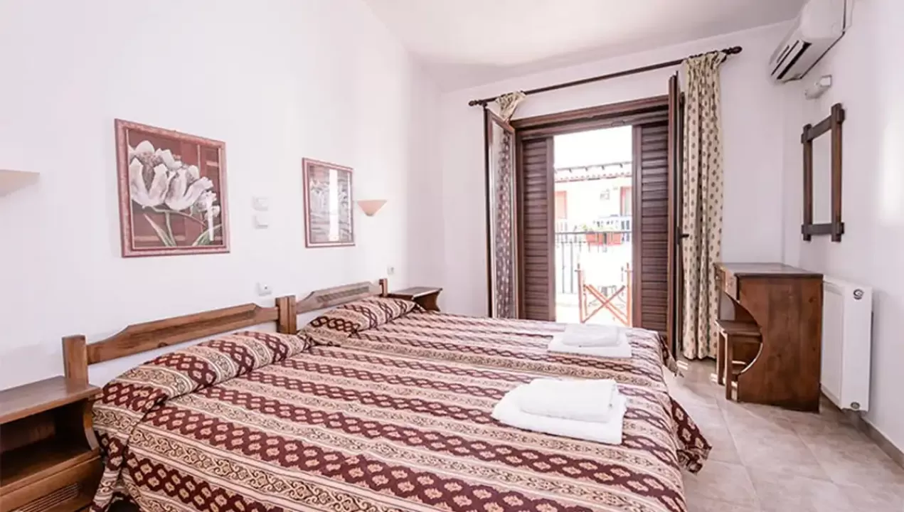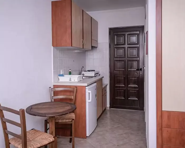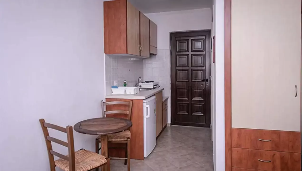 Vila poseduje dvokrevetne i trokrevetne studije. Svi studiji poseduju kompletno opremljenu kuhinju, kupatilo, terasu, klima uredjaj (u ceni 2023), wifi internet, TV. Promena posteljine i peskira je tri puta u toku smene, a ciscenje je svakodnevno.
