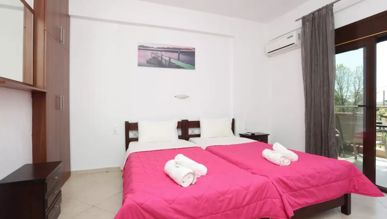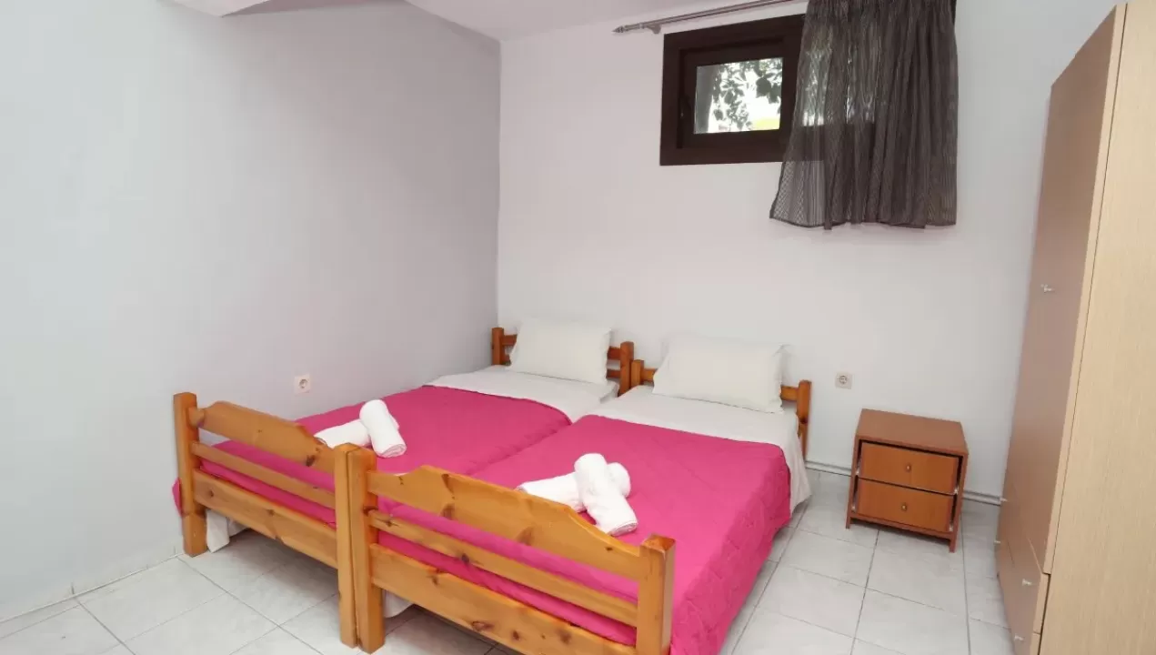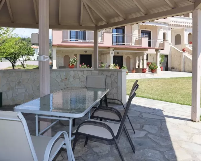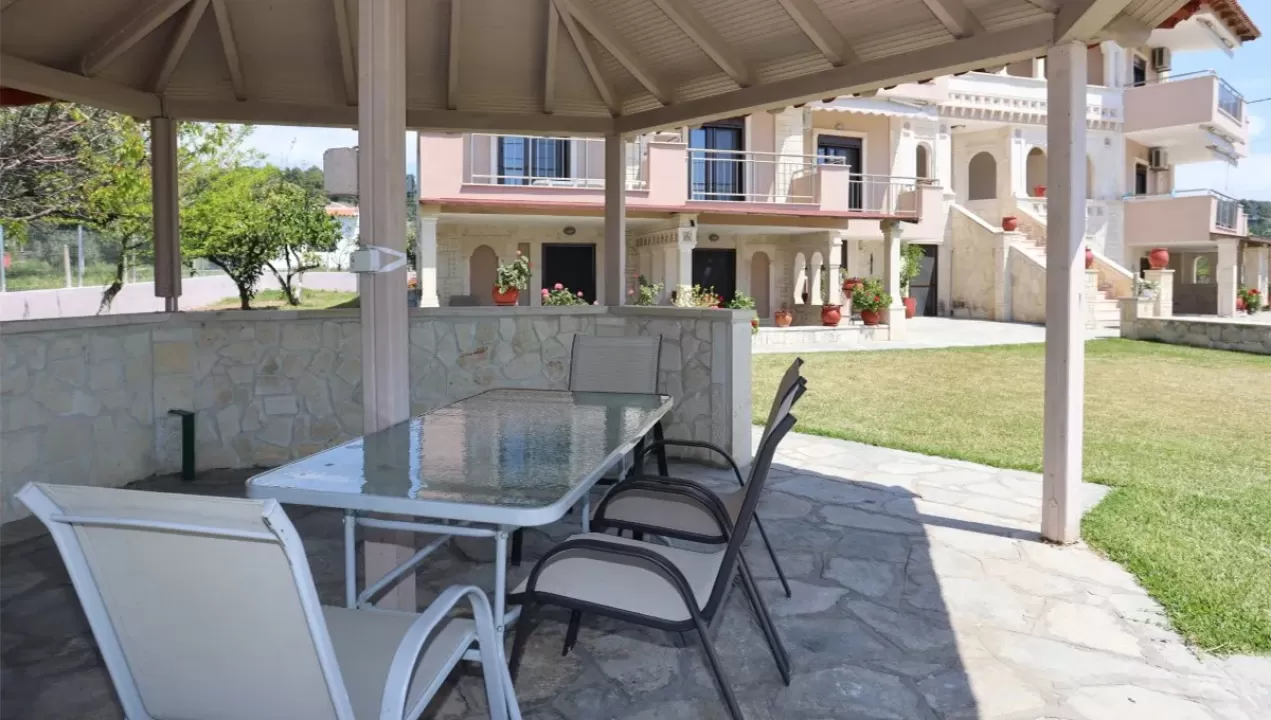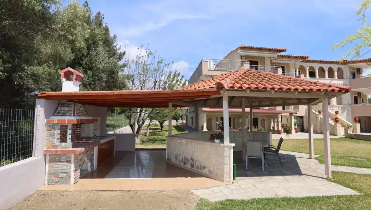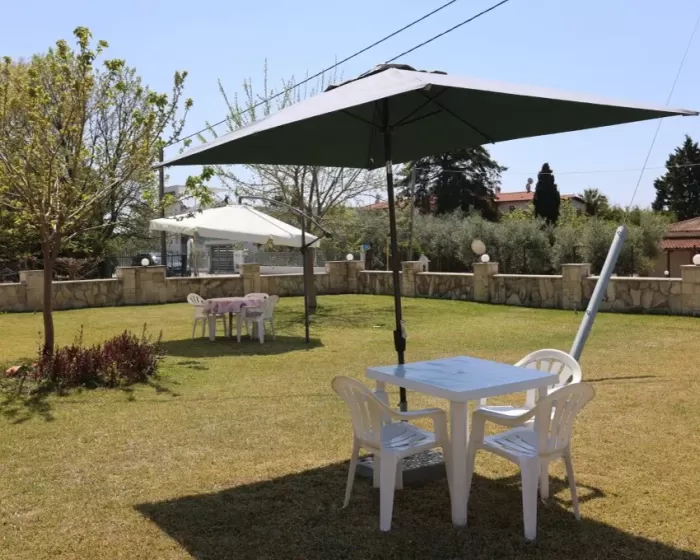 Vila Paradise (Paradisos) Nea Skioni se nalazi na oko 80 metara udaljenosti od neopremljene plaže u popularnom porodičnom letovalištu Nea Skioni. Smeštena je u lepo uredjenom dvorištu sa letnjikovcem. Opremljena gradska plaža, kao i najbliži supermarket su na oko 1500 metara od vile.