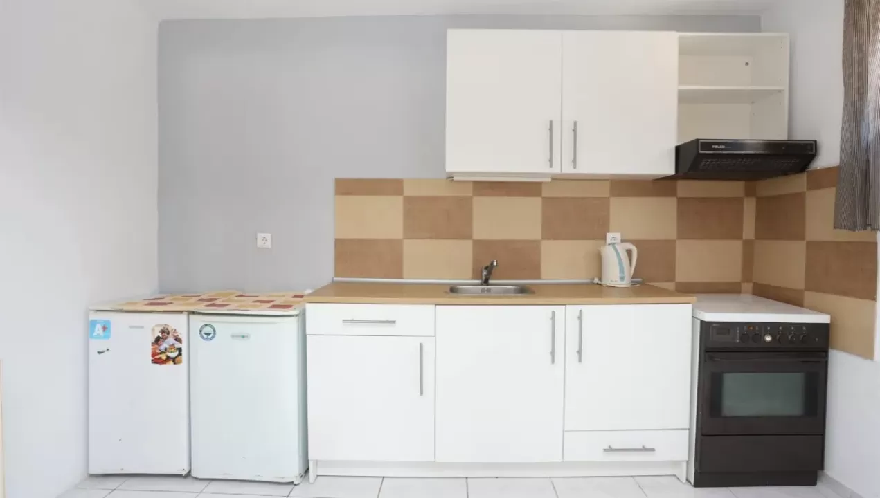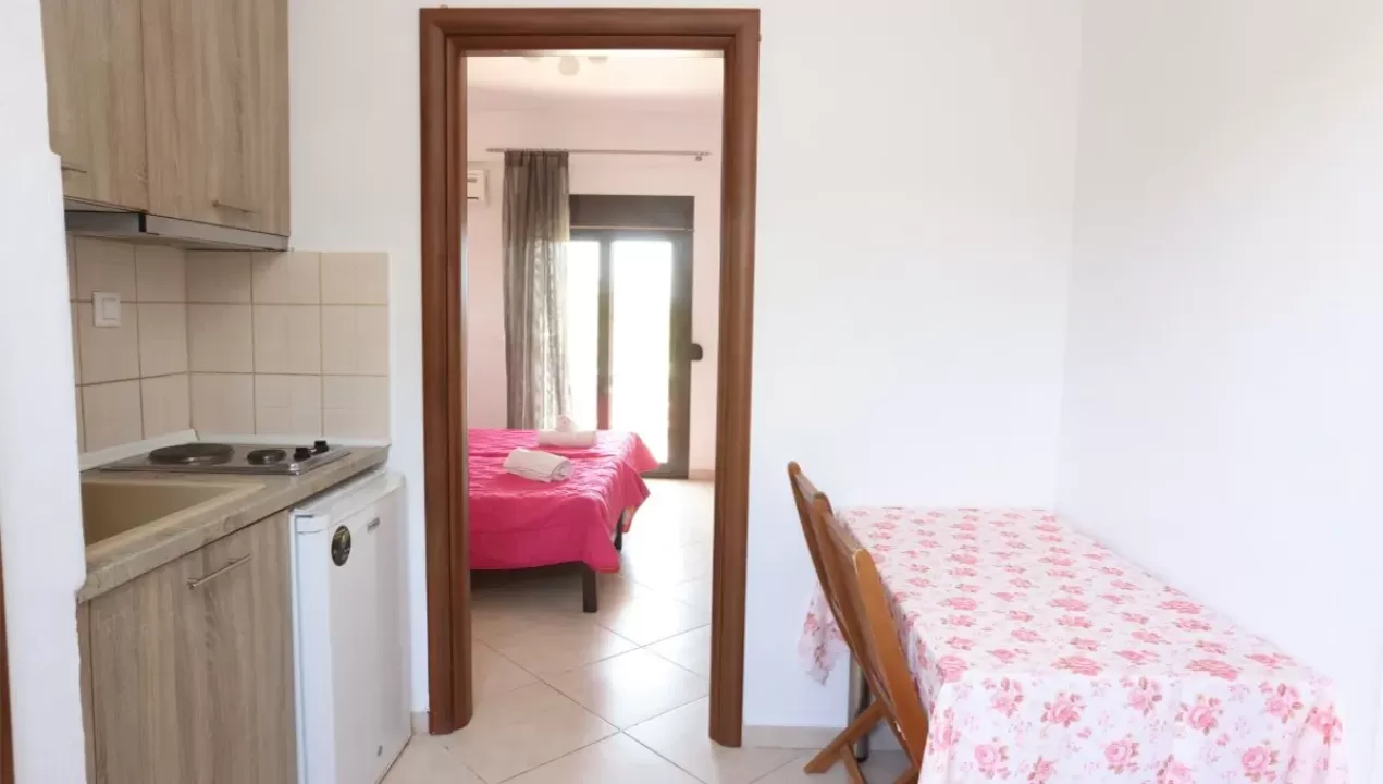 1/2 studio - u jednoj prostoriji čajna kuhinja i bračni ležaj ili dva standardna ležaja.