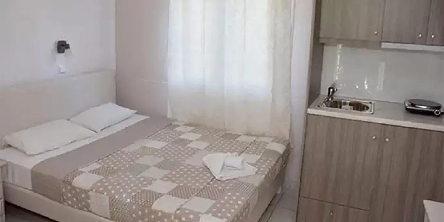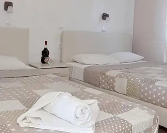 Vila raspolaže dvokrevetnim i trokrevetnim studijima koji imaju bočni pogled na more i smešteni su na prvom i drugom spratu, četvorokrevetnim apartmanima sa pogledom na dvorište na drugom spratu, i četvorokrevetnim apartmanom na trećem spratu (potkrovlje bez kosine), koji ima direktan pogled na more. Terase svih smeštajnih jedinica su na zajedničkim balkonima, jednim delom odvojene gelenderima. U zajednički ležaj mogu deca do 2 godine (širina francuskog ležaja je 160 cm), osim u trokrevetnom studiju gde deca ne mogu da dele ležaj (širina francuskog ležaja 140 cm). Svaka smeštajna jedinica poseduje kompletno opremeljenu kuhinju, kupatilo (tuš/WC),terasu, plazma TV, besplatnu Wi-Fi internet konekciju i klima uredjaj koji se doplaćuje (5 € dnevno po smeštajnoj jedinici).Ova doplata nije obavezna. Vila nema parking, ali u blizini postoje dva javna besplatna parkinga. U dvorištu vile nalazi se ronilački centar jedan od najpoznatijih na Tasosu, sa licenciranim instruktorom koji je i vlasnik vile. Svi gosti imaju 15 % popusta na ronjenje i masažu koja je takodje u ponudi vlasnika vile.
