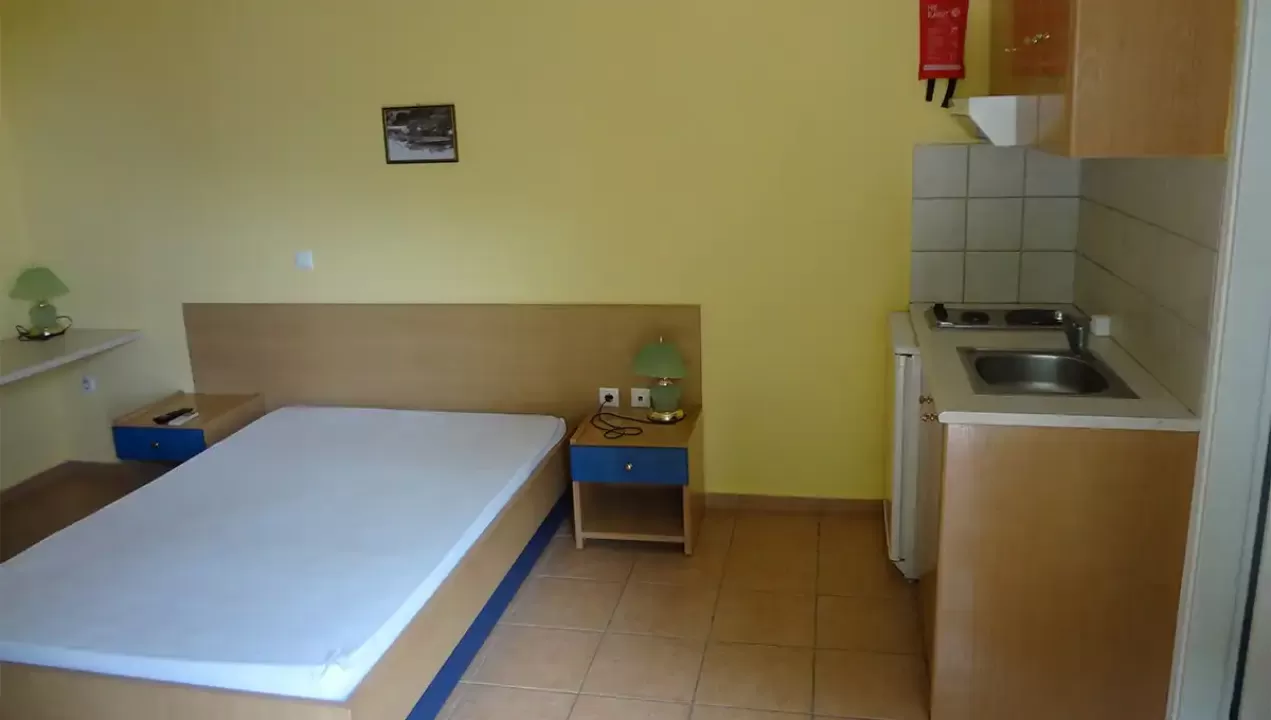 Vila Pitas Skala Kefalonia se nalazi u mirnom delu u produžetku glavne ulice, kojom je povezana sa centrom i plažom. Smeštena je u prirodnom ambijentu, okružena borovima, u sopstvenom vrtu sa negovanom engleskom travom i pogledom na more. Udaljena je oko 700 metara od prelepe peščane plaže Scala. Studiji sadrže prostrane, komforne sobe sa nameštajem najvišeg kvaliteta, kao u hotelima visoke kategorije, sa dva standardna kreveta ili francuskim ležajem sa trećim ležajem. Na oko 100 metara od vile su prodavnice, kafići i taverne.