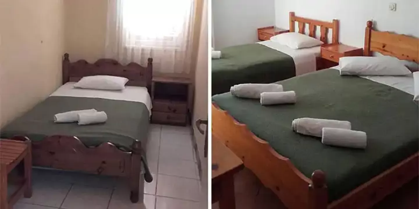 Vila raspolaže dvokrevetnim (maksimalno za dve osobe), trokrevetnim studijima (maksimalno za tri osobe), četvorokrevetnim apartmanima (maksimalno za četiri osobe) i dvokrevetnim sobama (maksimalno za dve osobe). Svi studiji i apartmani imaju kompletno opremljenu čajnu kuhinju, kupatilo (tuš/WC), TV, balkon, kao i klima uredjaj koji se dodatno naplaćuje 5€ dnevno po studiju (ova doplata nije obavezna). Sobe su sa frižiderom i rešoom (nemaju kuhinju). Wi-Fi i sef su besplatni.