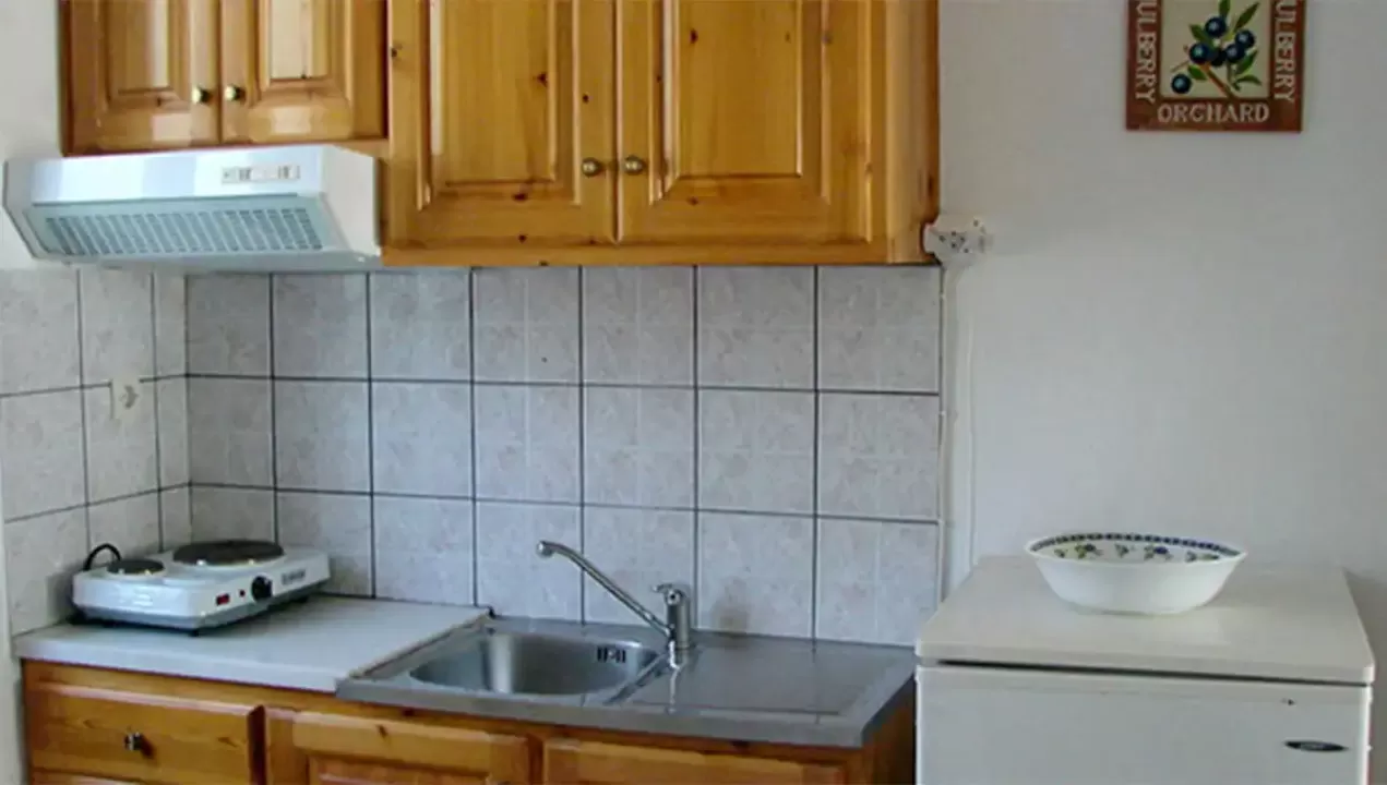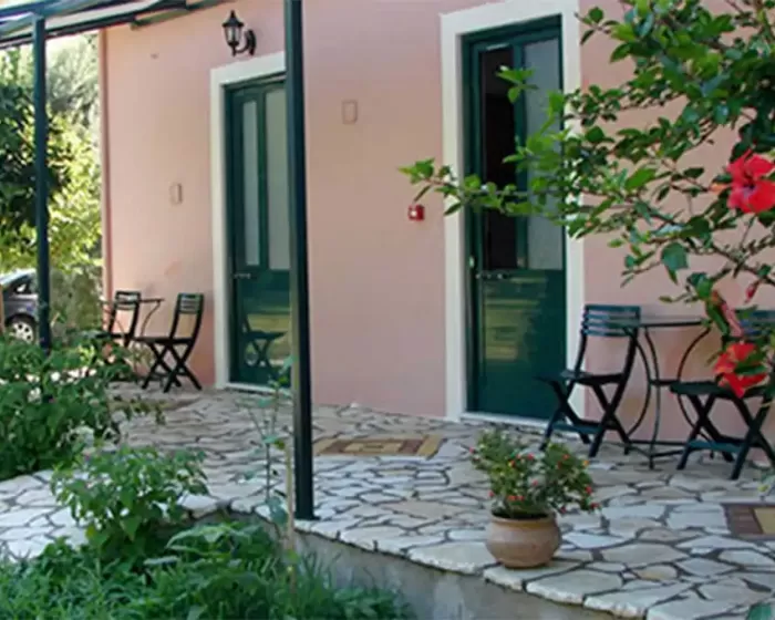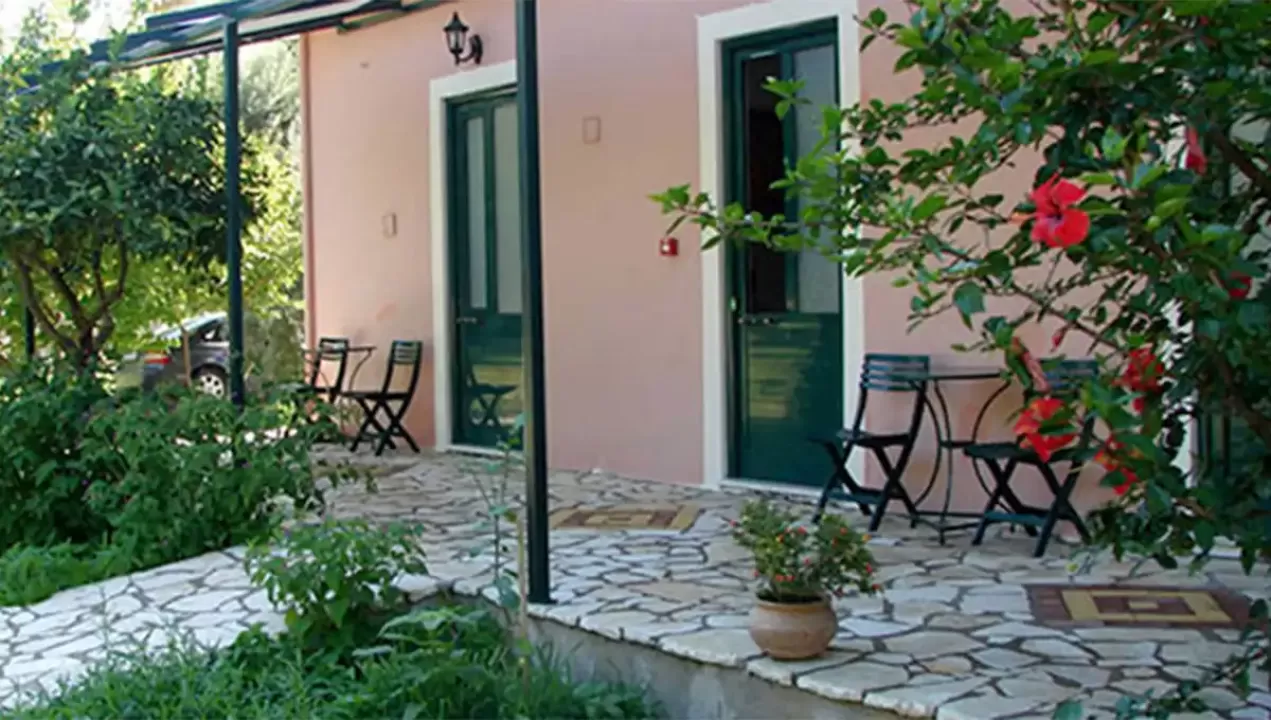 Svi apartmani se nalaze u prizemlju, osim duplex apartmana koji se nalazi na prvom spratu, i svi imaju direktan pogled na more. Poseduju opremljenu kuhinju, kupatilo/wc, terasu, komarnike na prozorima, TV, wifi internet, klima-uredjaj (uz doplatu na licu mesta, od 5€ dnevno), dve ležaljke za plažu (po apartmanu), privatni parking i veliku baštu sa roštiljem. Dupleks apartman ima dve spavaće sobe, dnevnu sobu sa kaminom i garniturom za sedenje, trpezariju i potpuno opremljenu kuhinju, veliko kupatilo i odvojeni wc i veliku terasu. U blizini se nalazi glavna ulica sa šetalištem i mnogobrojnim prodavnicama, restoranima i drugim turističkim sadržajima. Preporučuje se za porodice i za miran odmor ali i kao odlična baza za one koji žele da, sopstvenim prevozom, obilaze ostrvo.